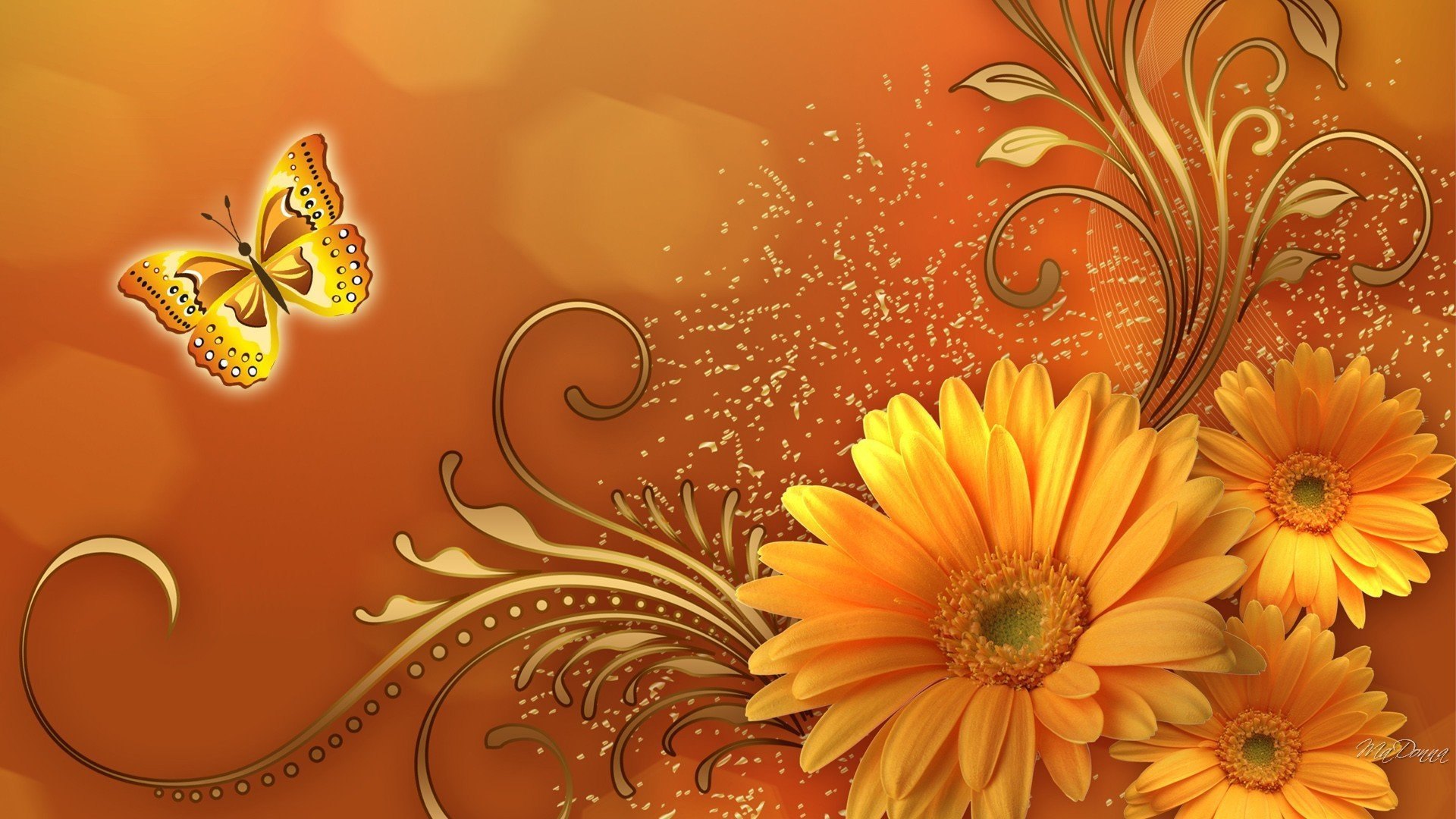 Оранжевый фон с узорами