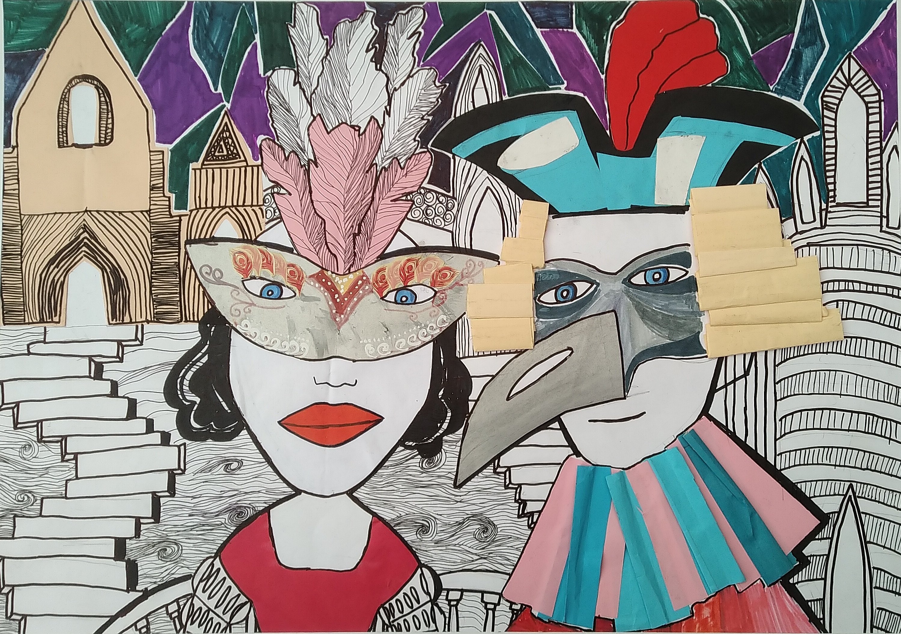 Карнавальный портрет рисунок