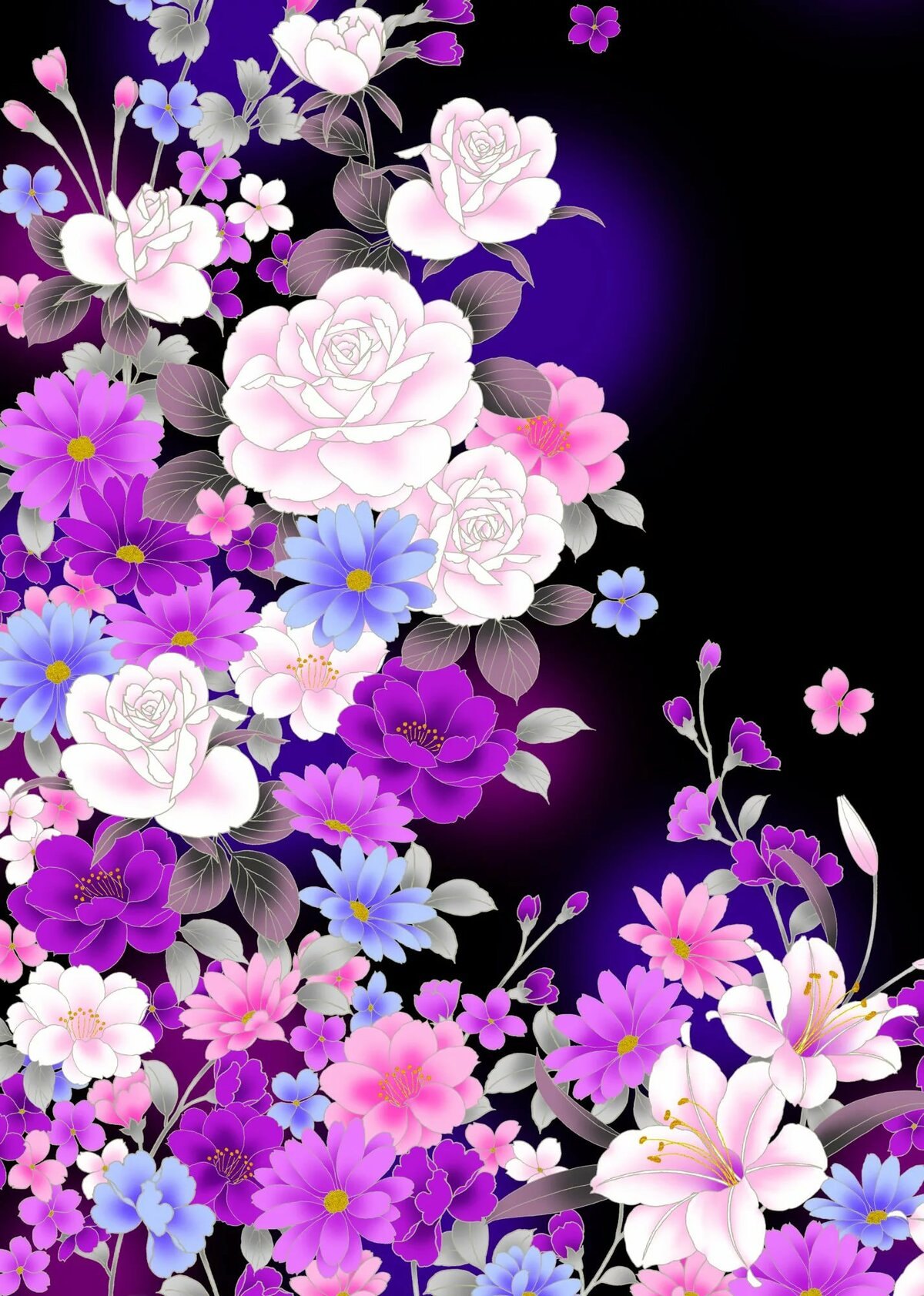 Яркие цветы на черном фоне