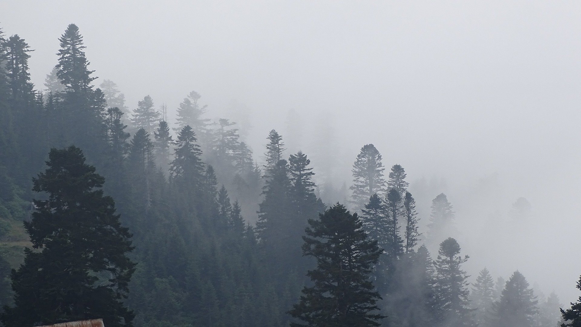 Хвойный лес в тумане