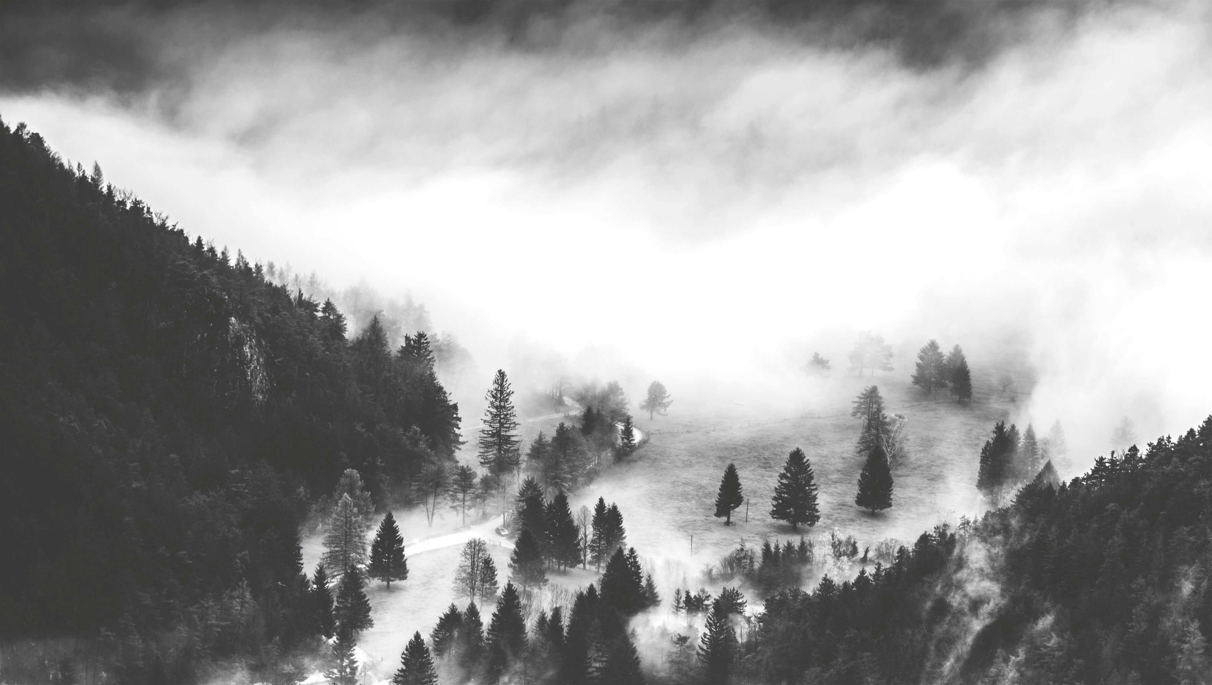 Горы туман лес Скандинавия