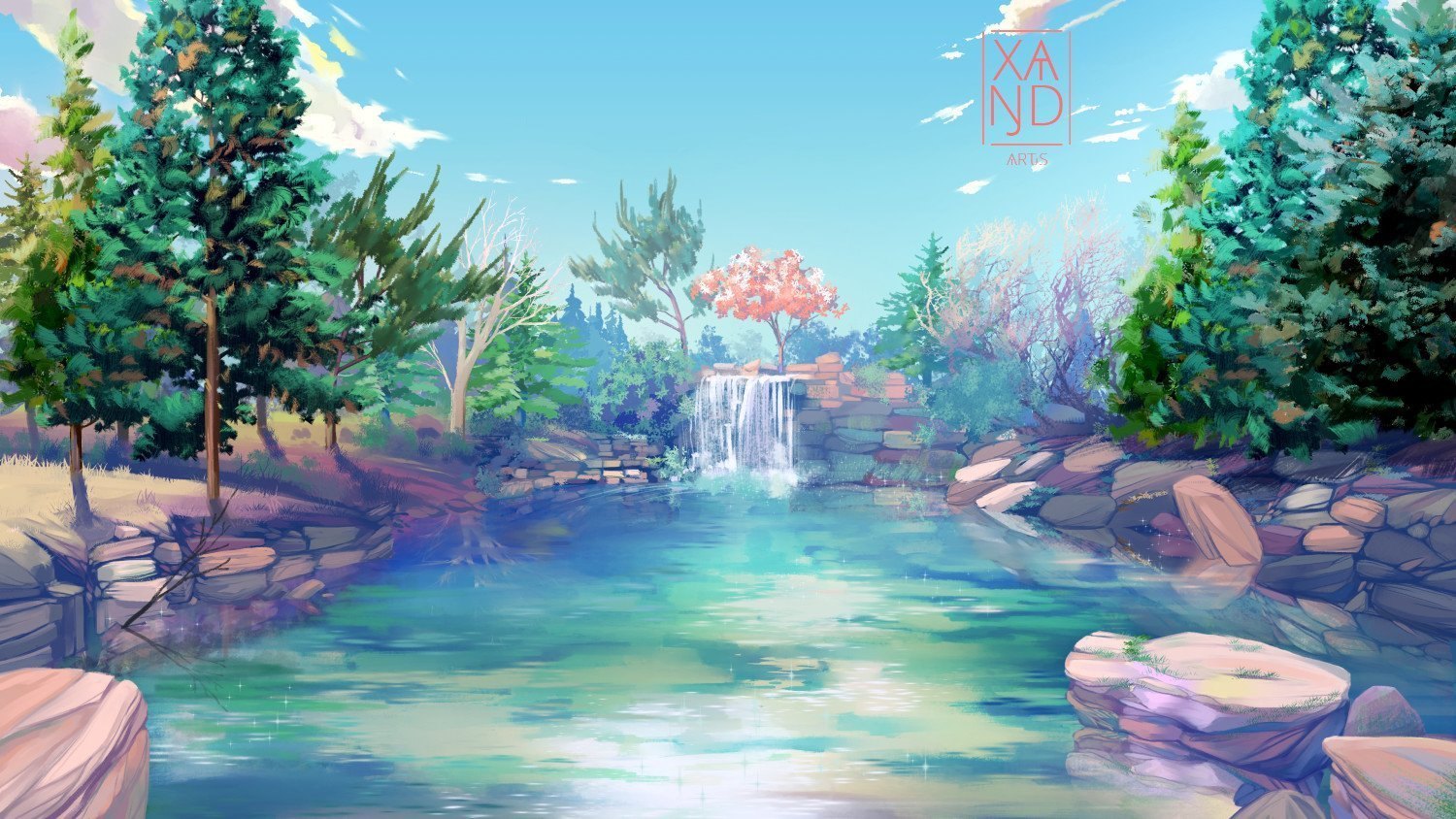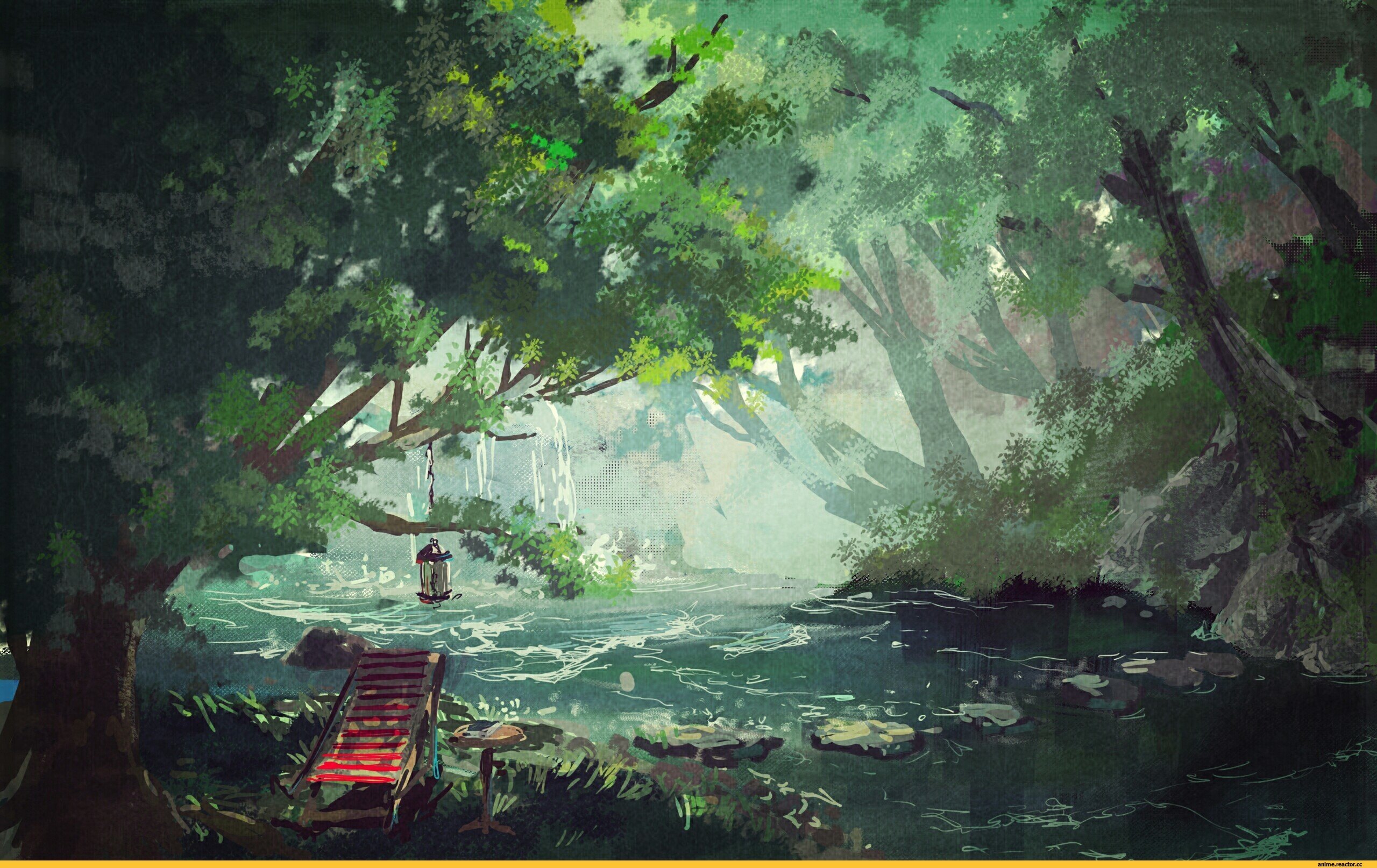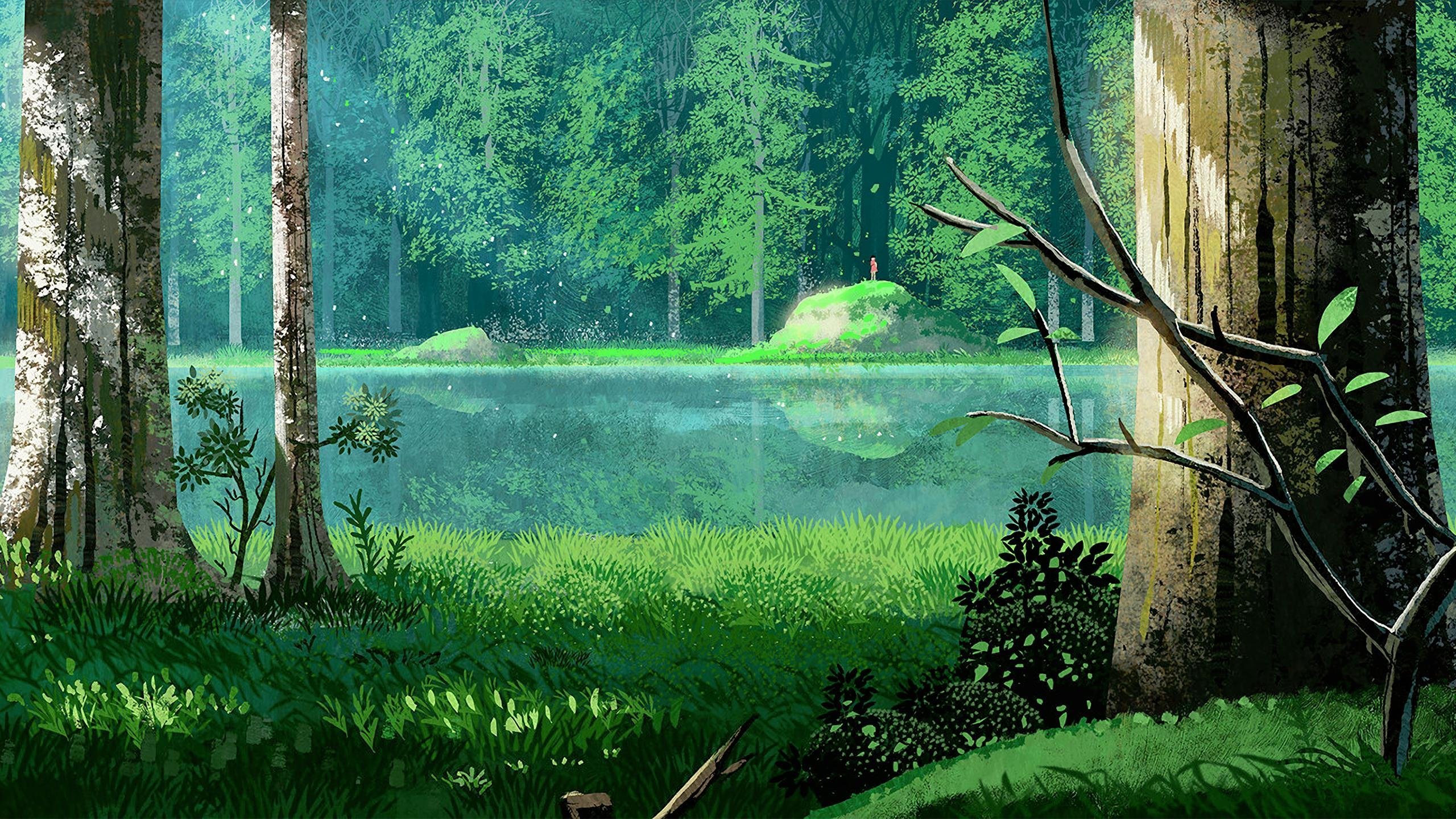 Аниме озеро в лесу