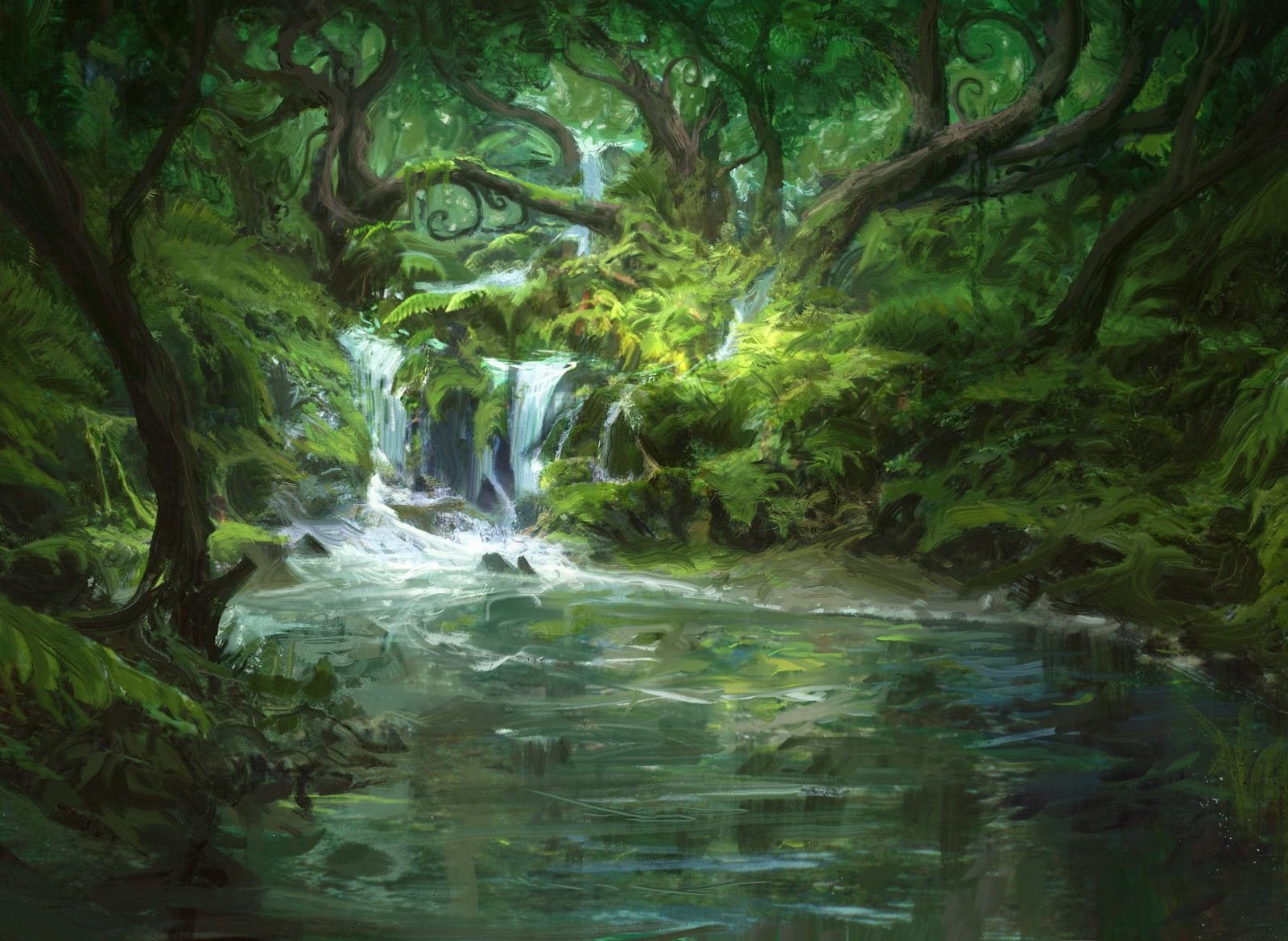 Хаяо Миядзаки лес ручей вода озеро река
