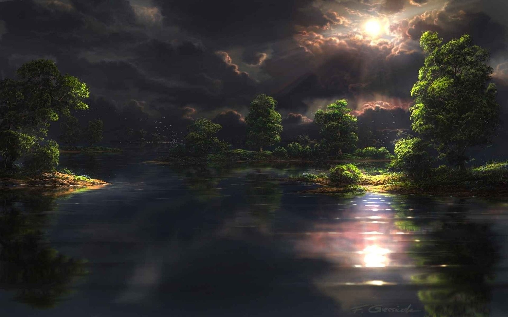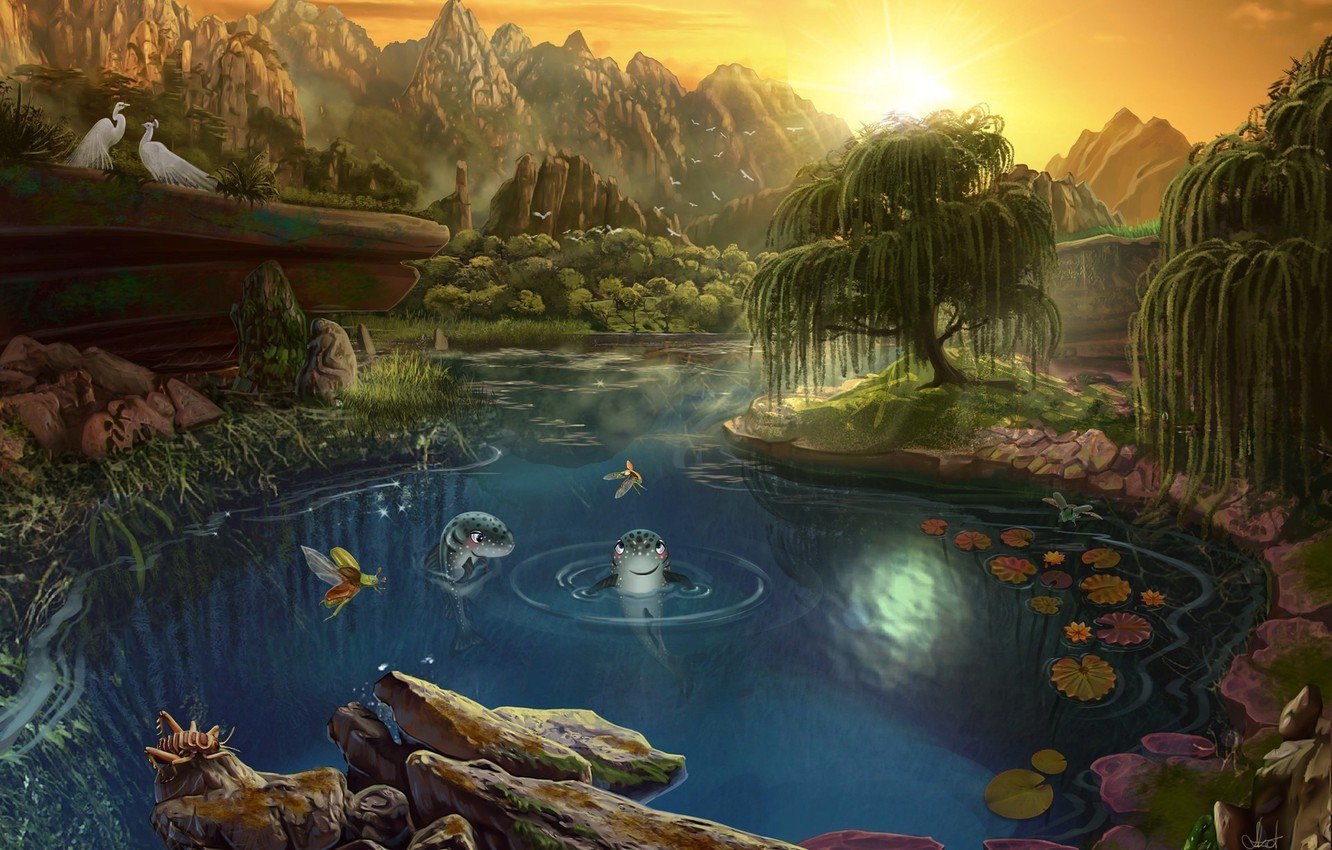 Фэнтези пейзаж озеро