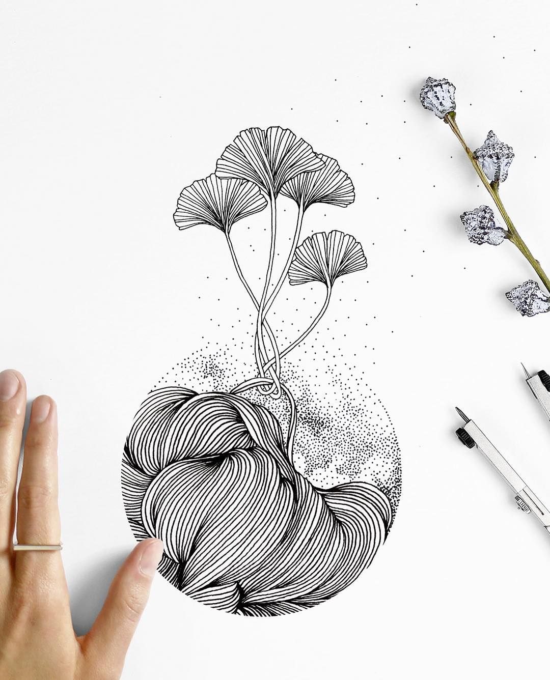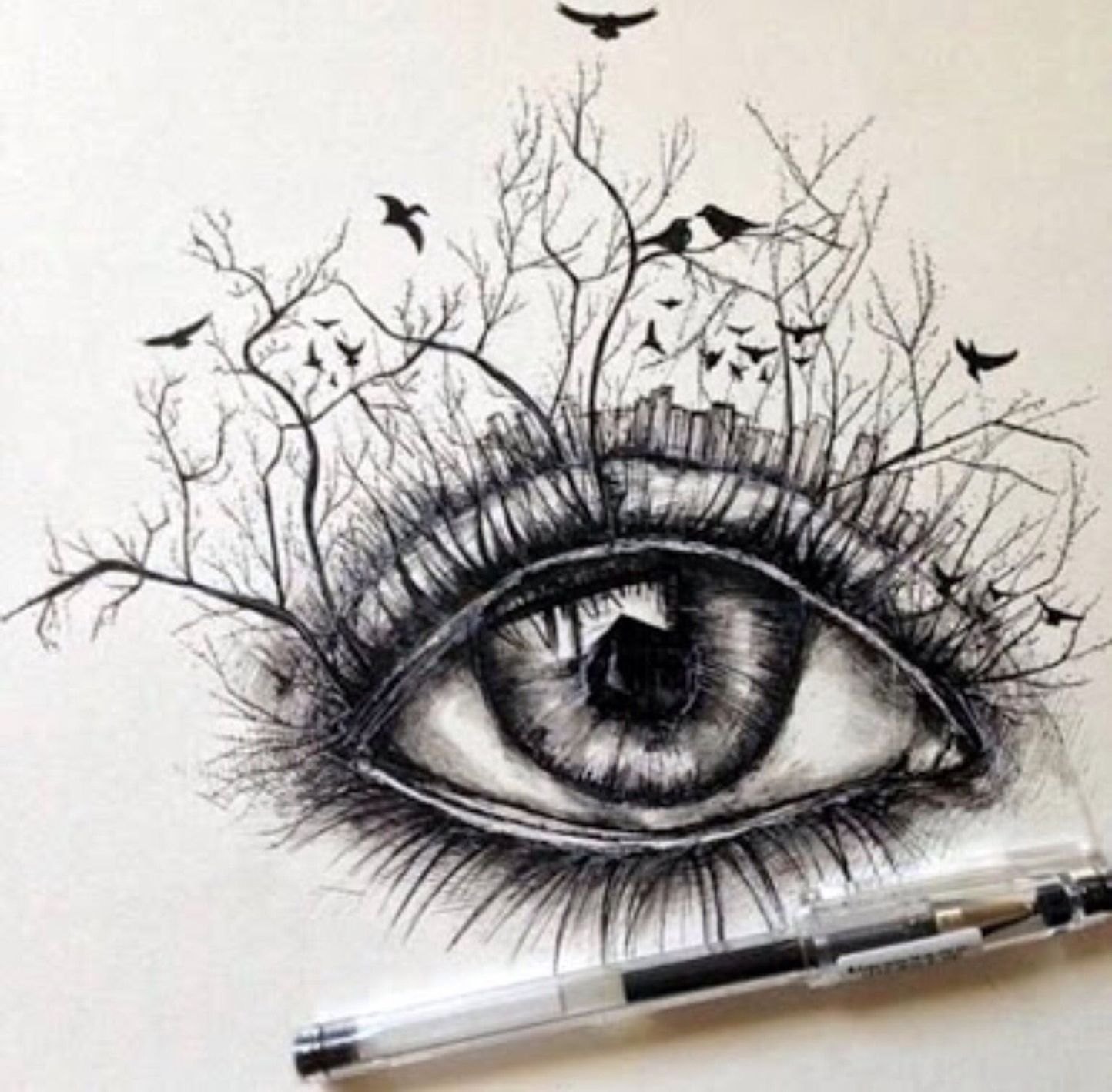 Рисование черной гелевой ручкой