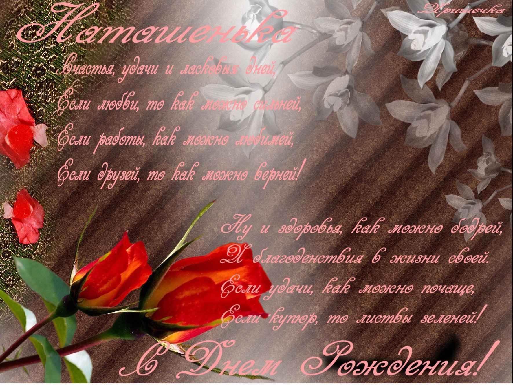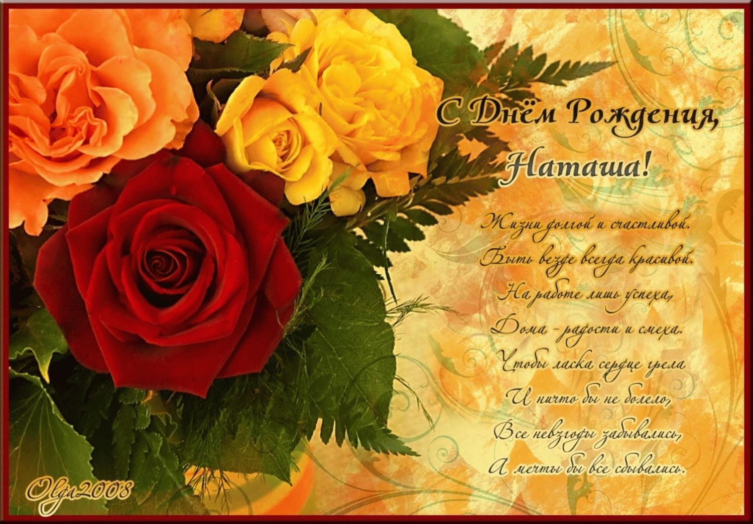 Поздрааление с днём рождения Наташа