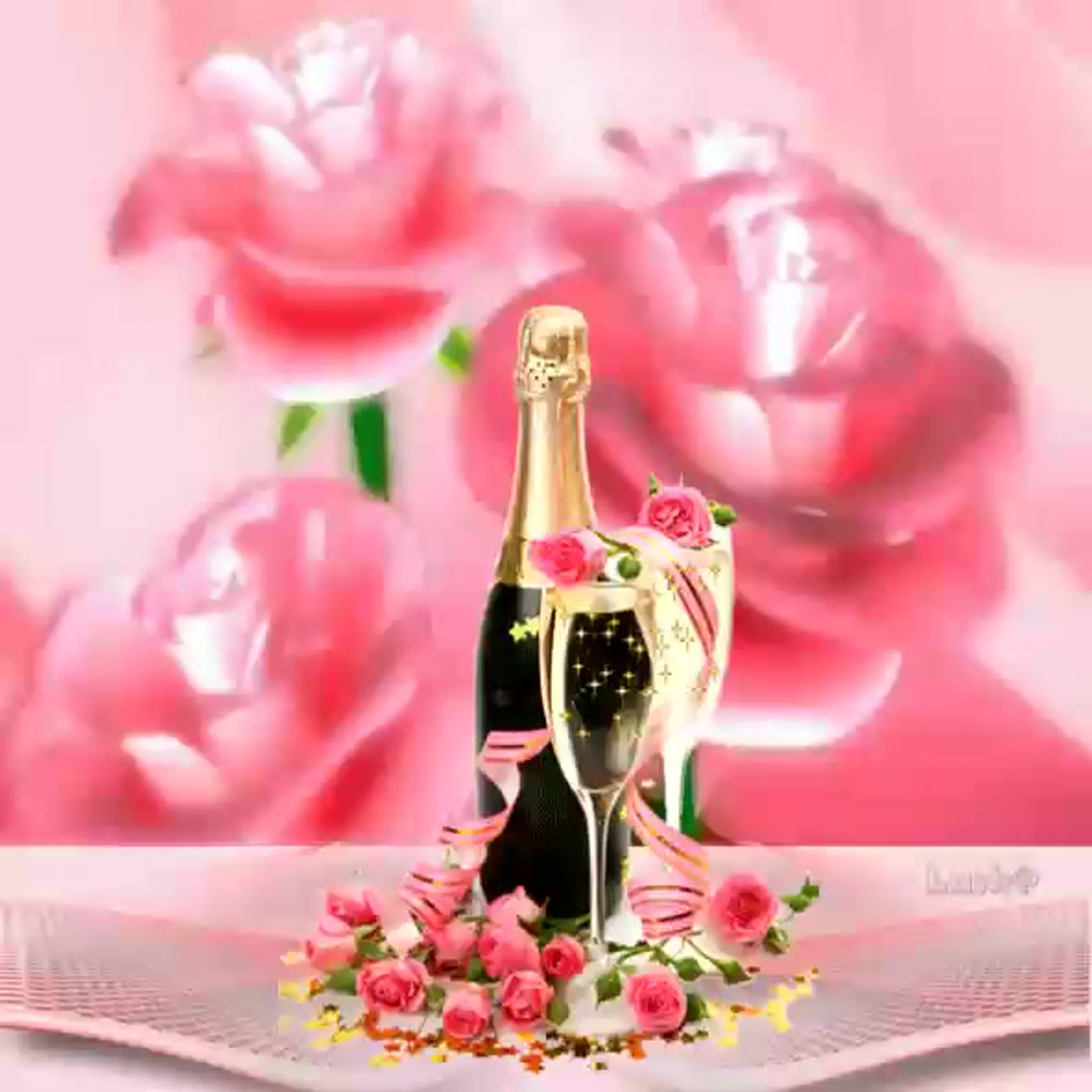 Открытки с днём рождения торт и шампанское