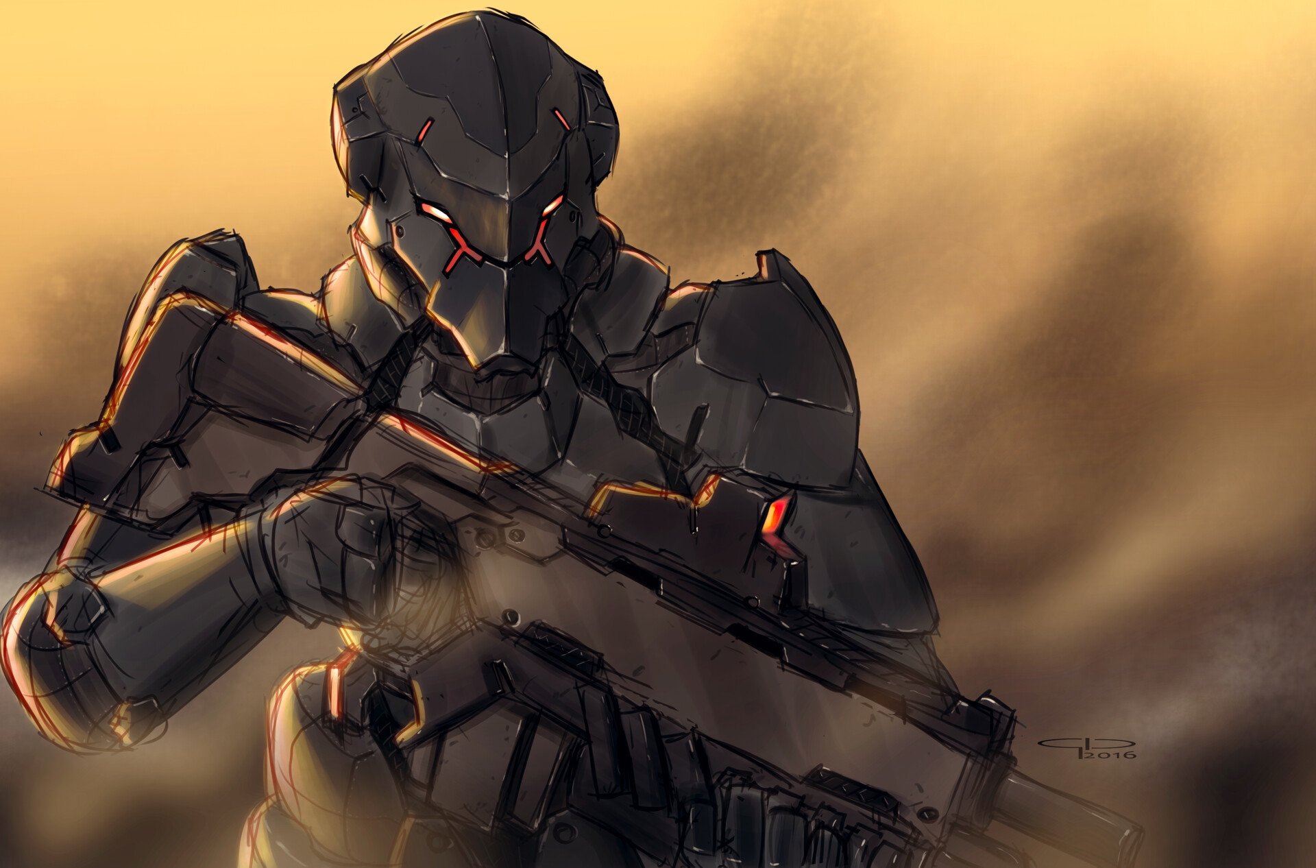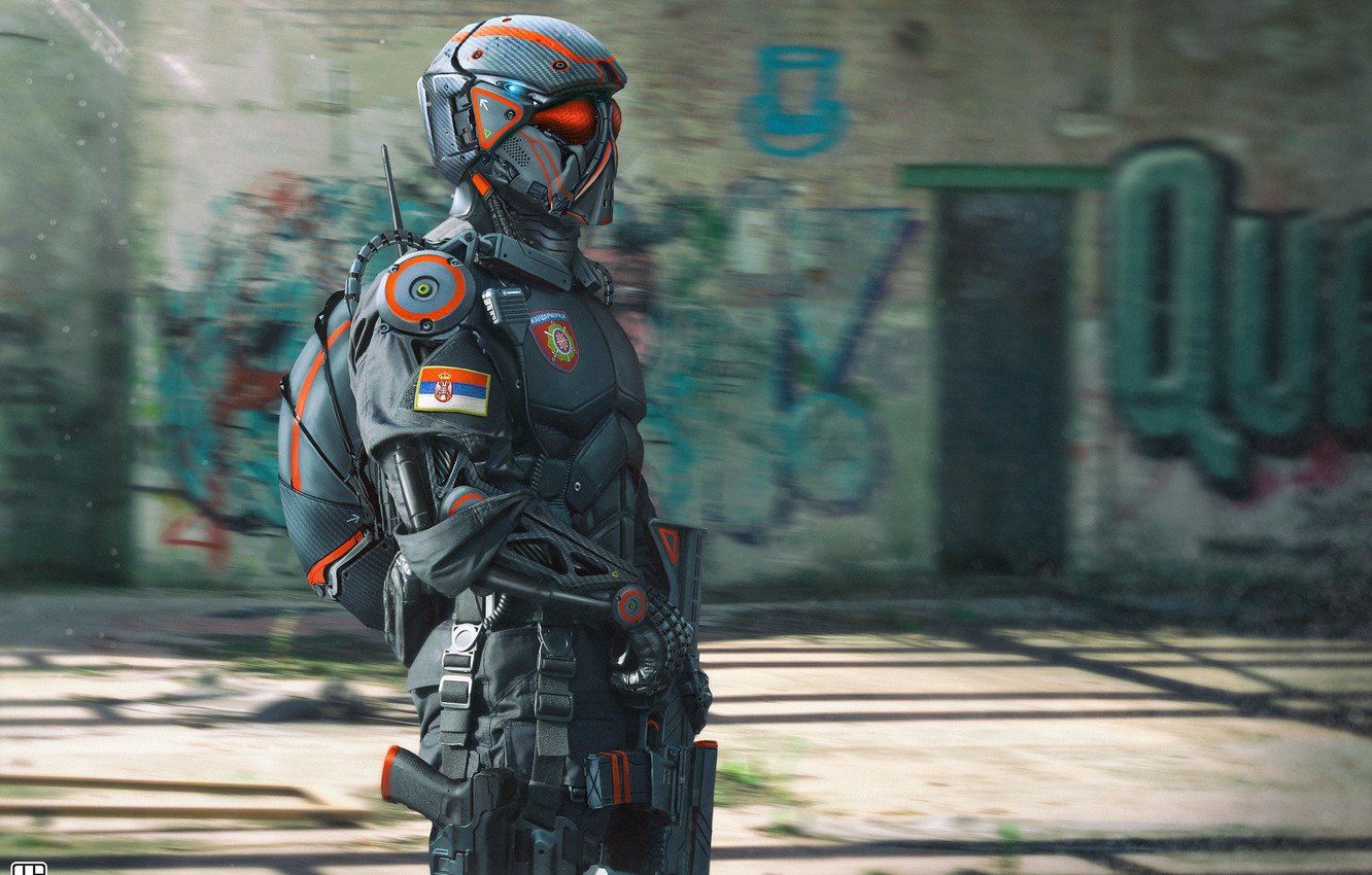 Киберпанк солдат арт