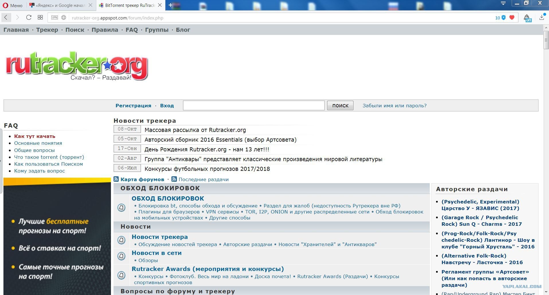 Rutracker.org обход блокировок Яндекс браузер
