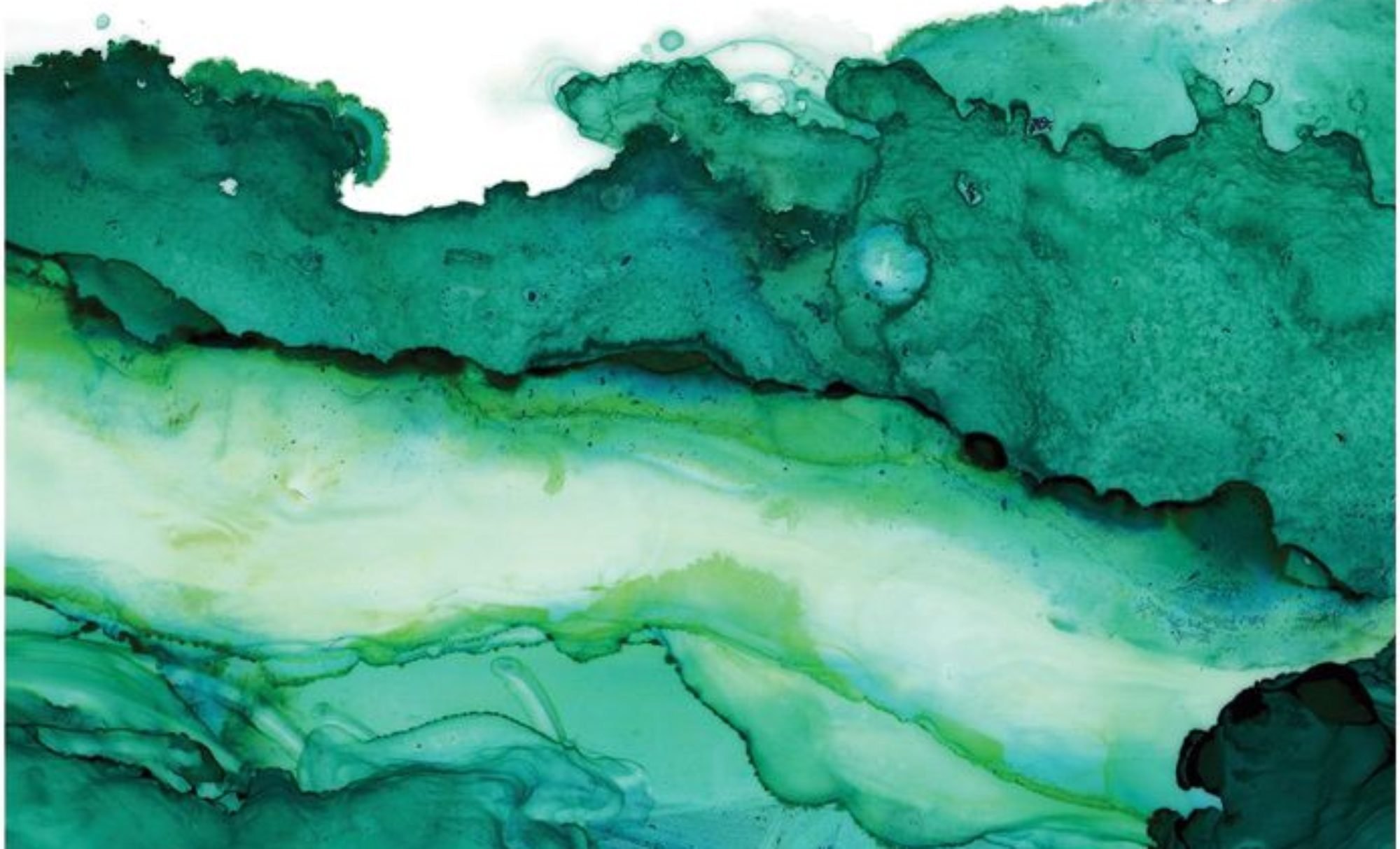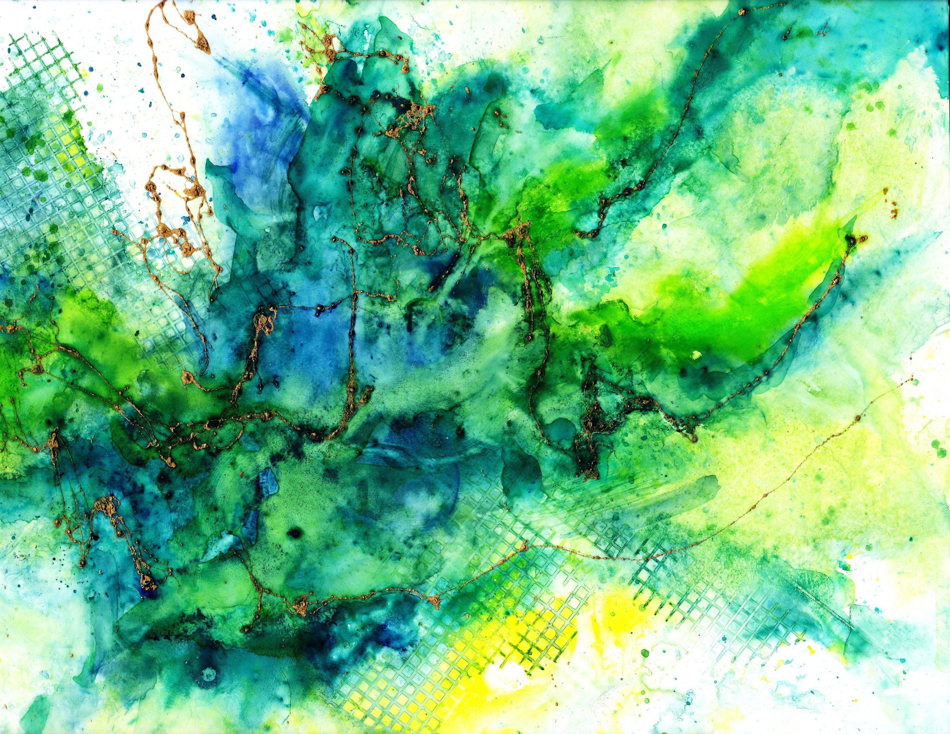 Зеленые разводы акварель