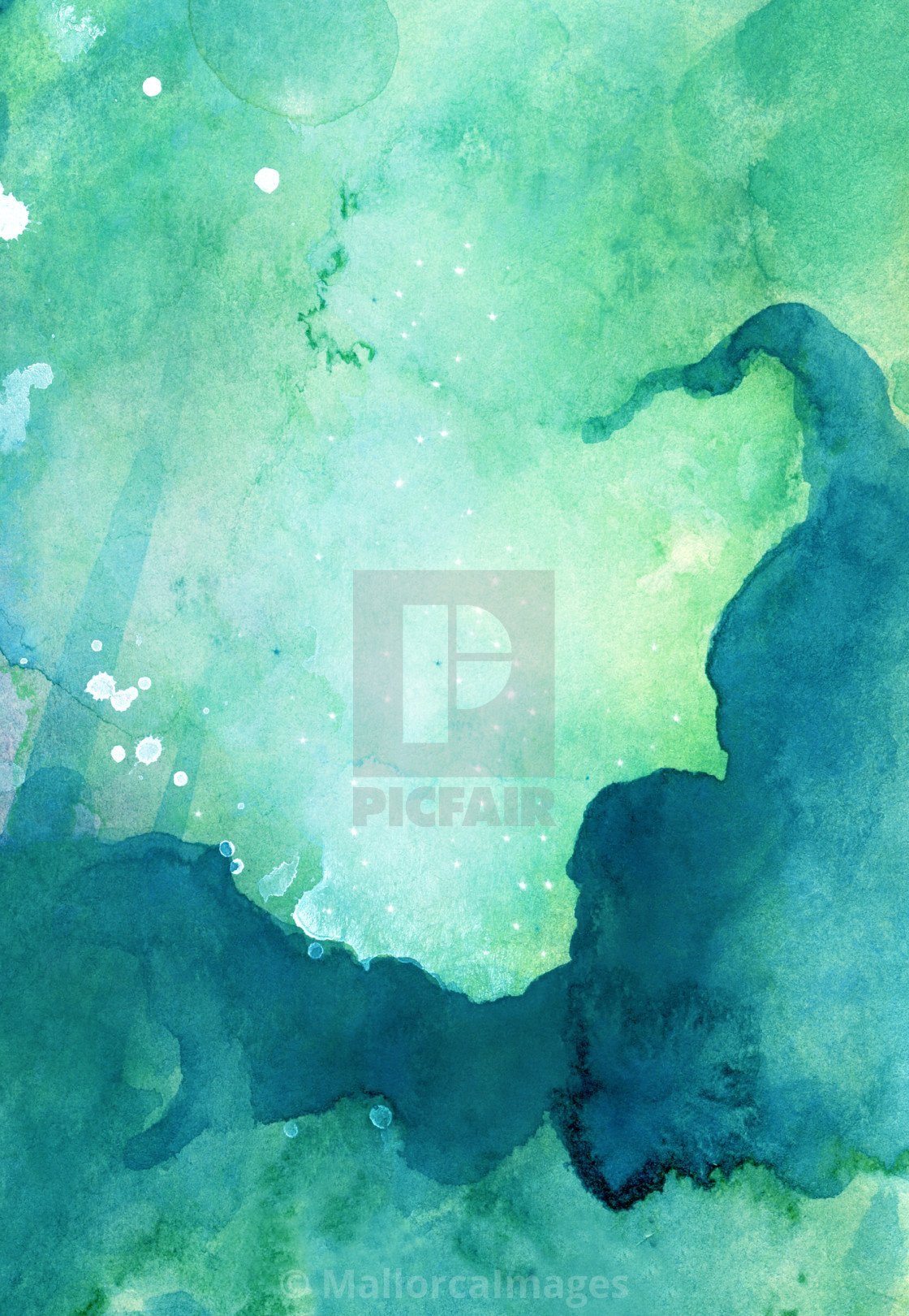 Акварель зеленый голубой