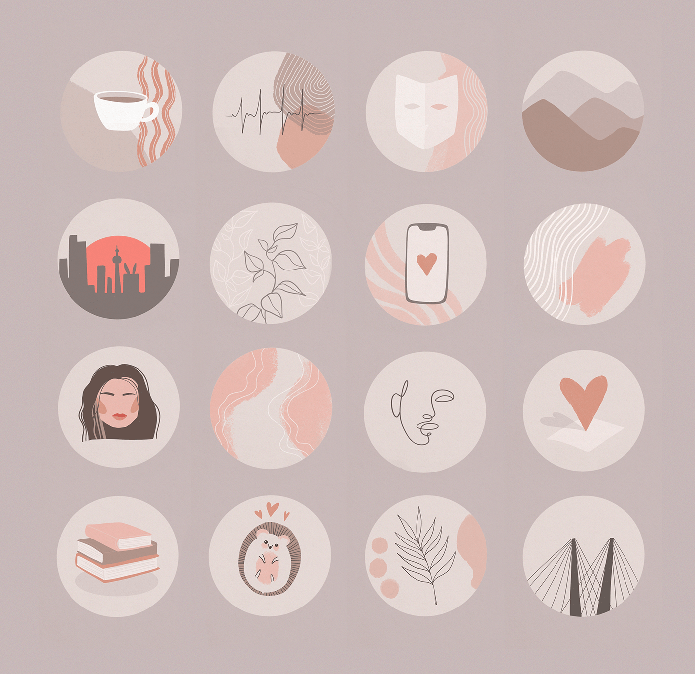 Значки для актуального в одном стиле