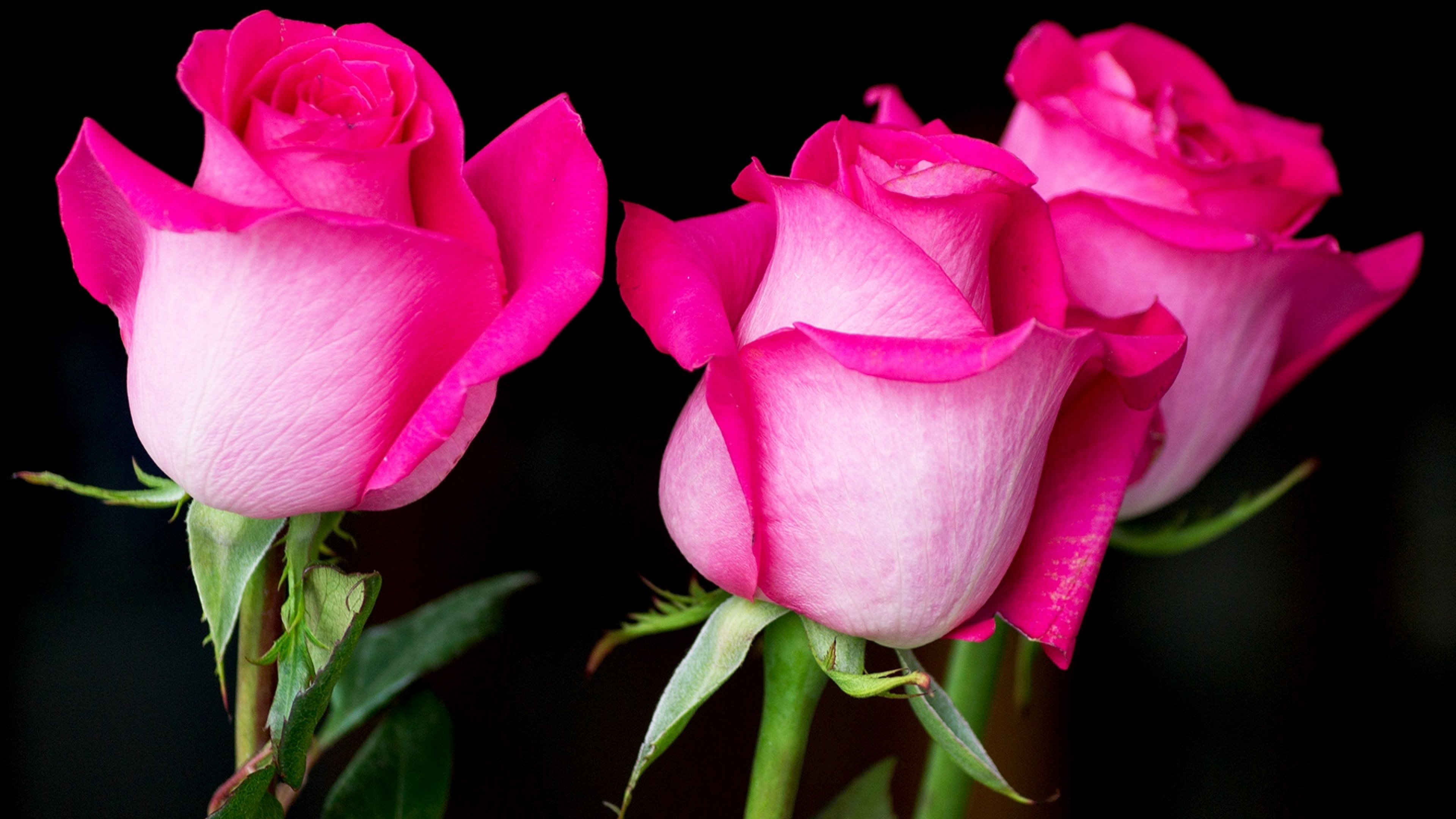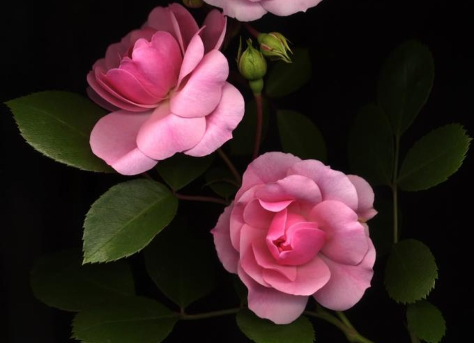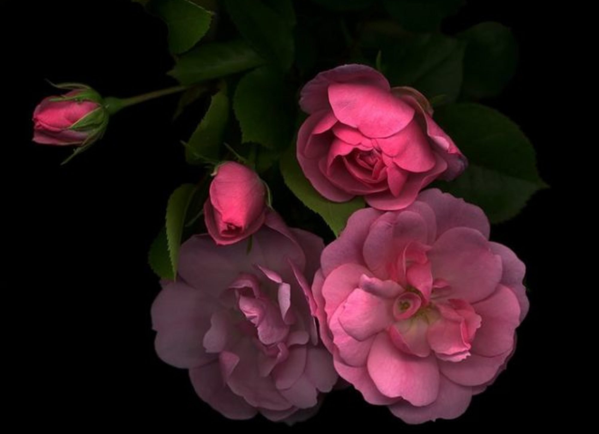 Розовые розы на черном фоне