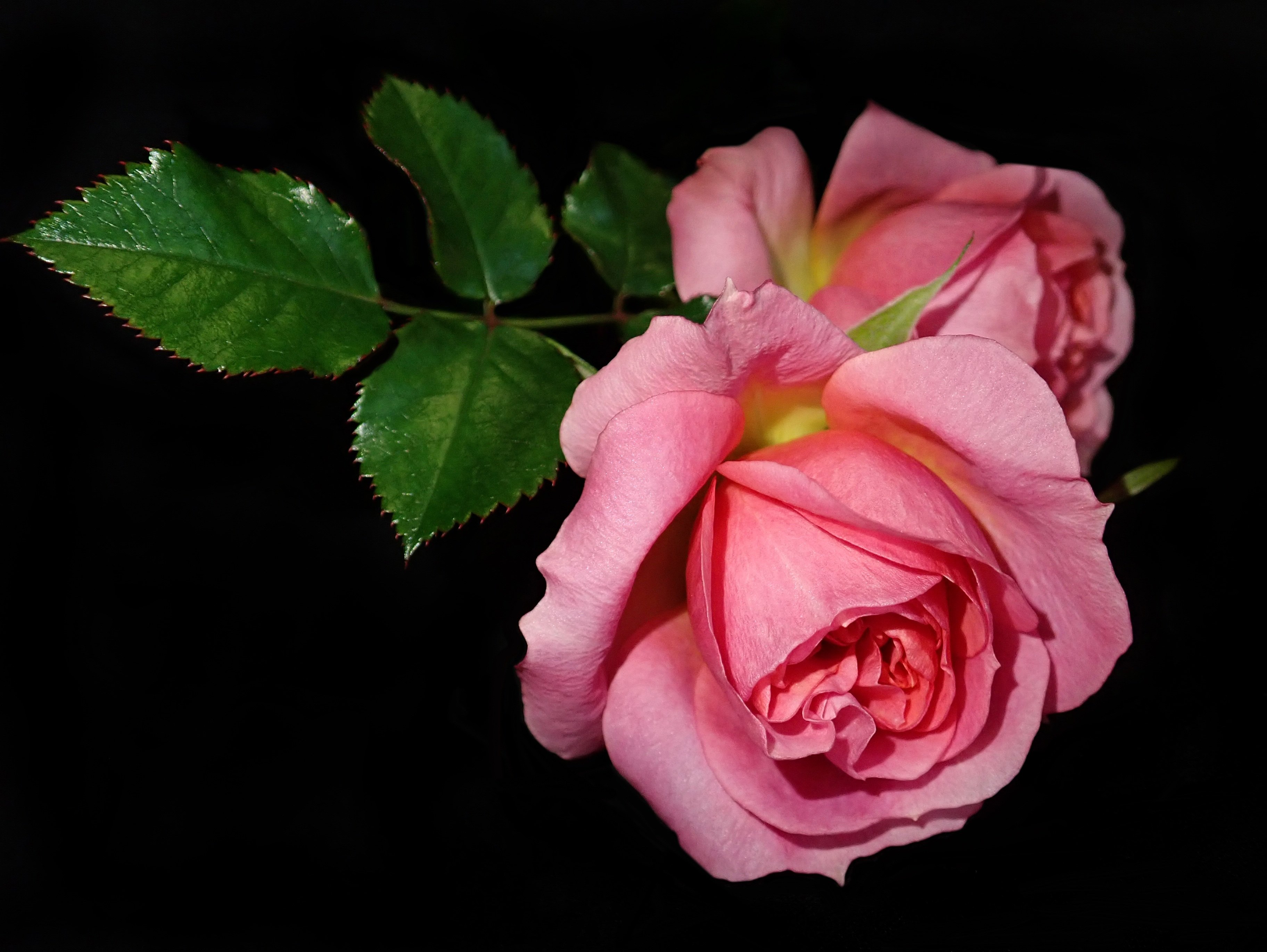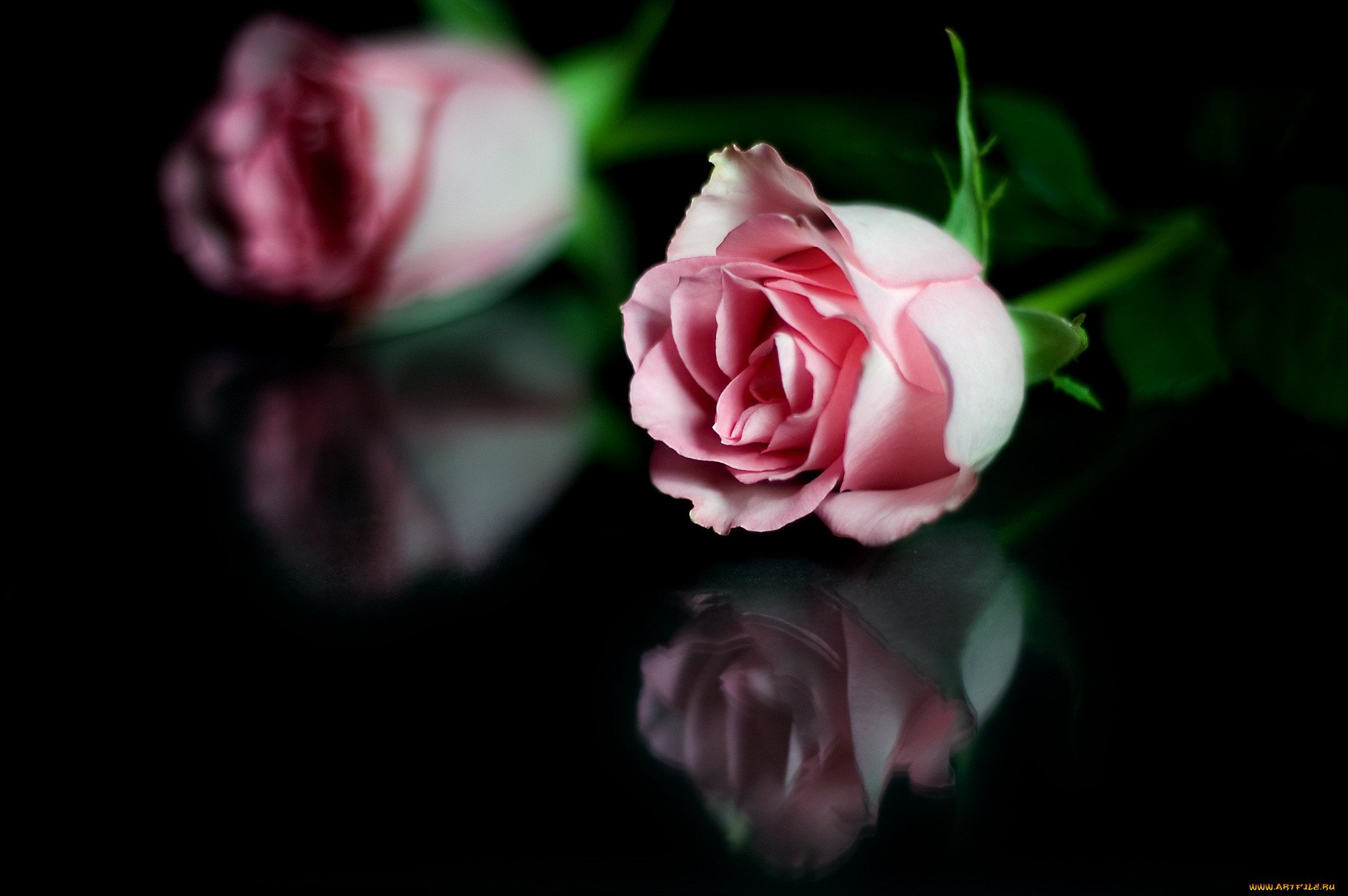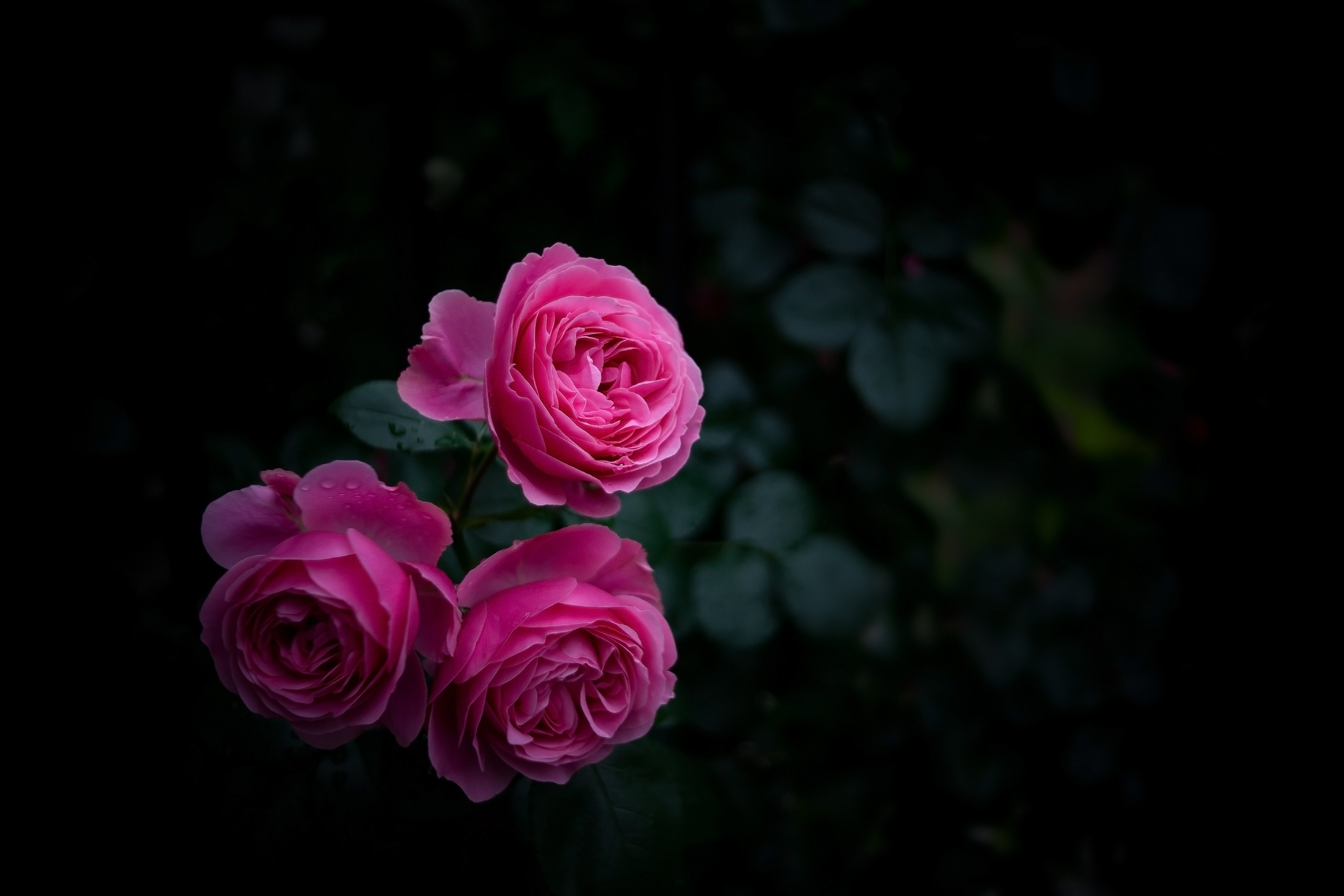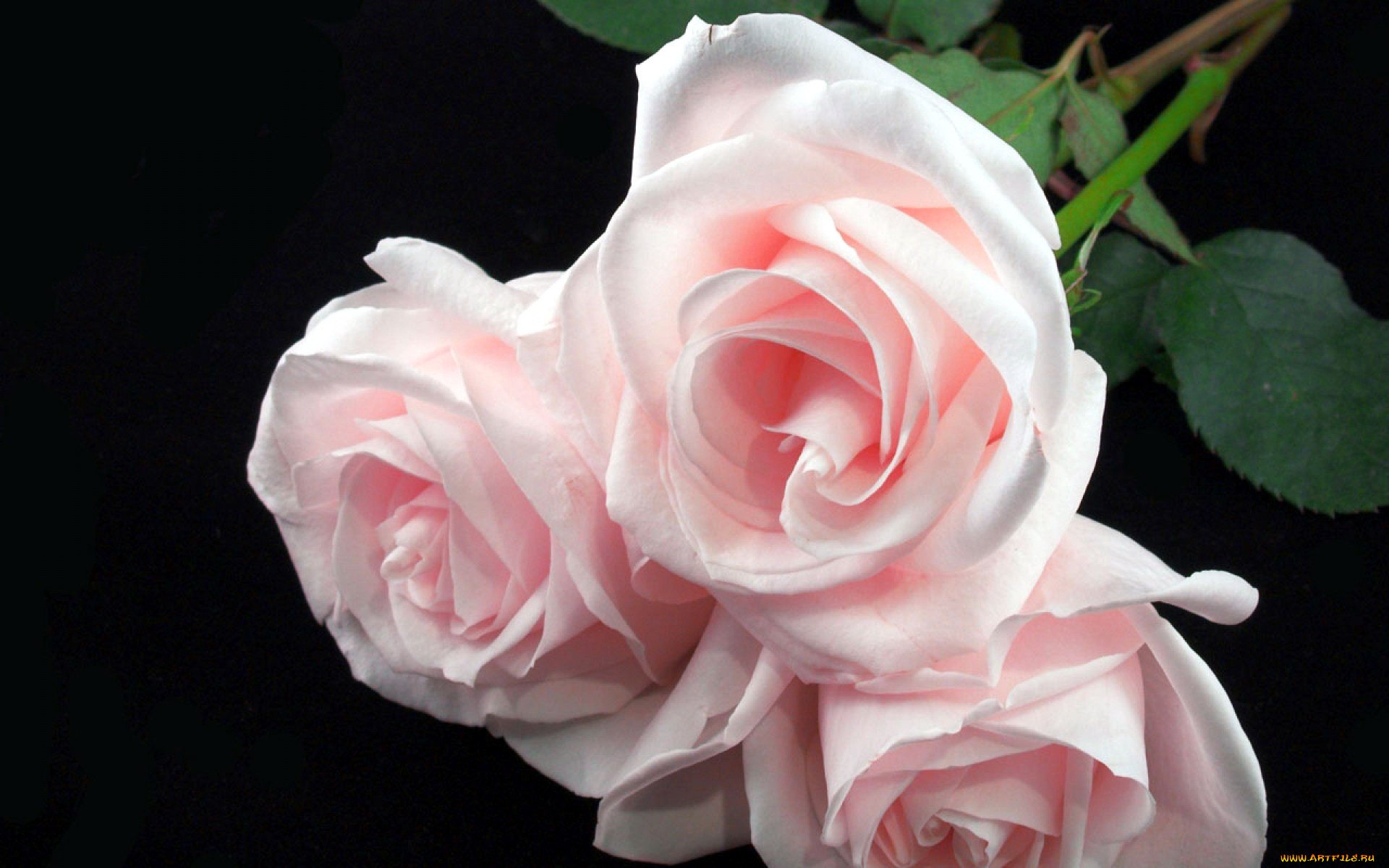 Розовые розы на черном фоне