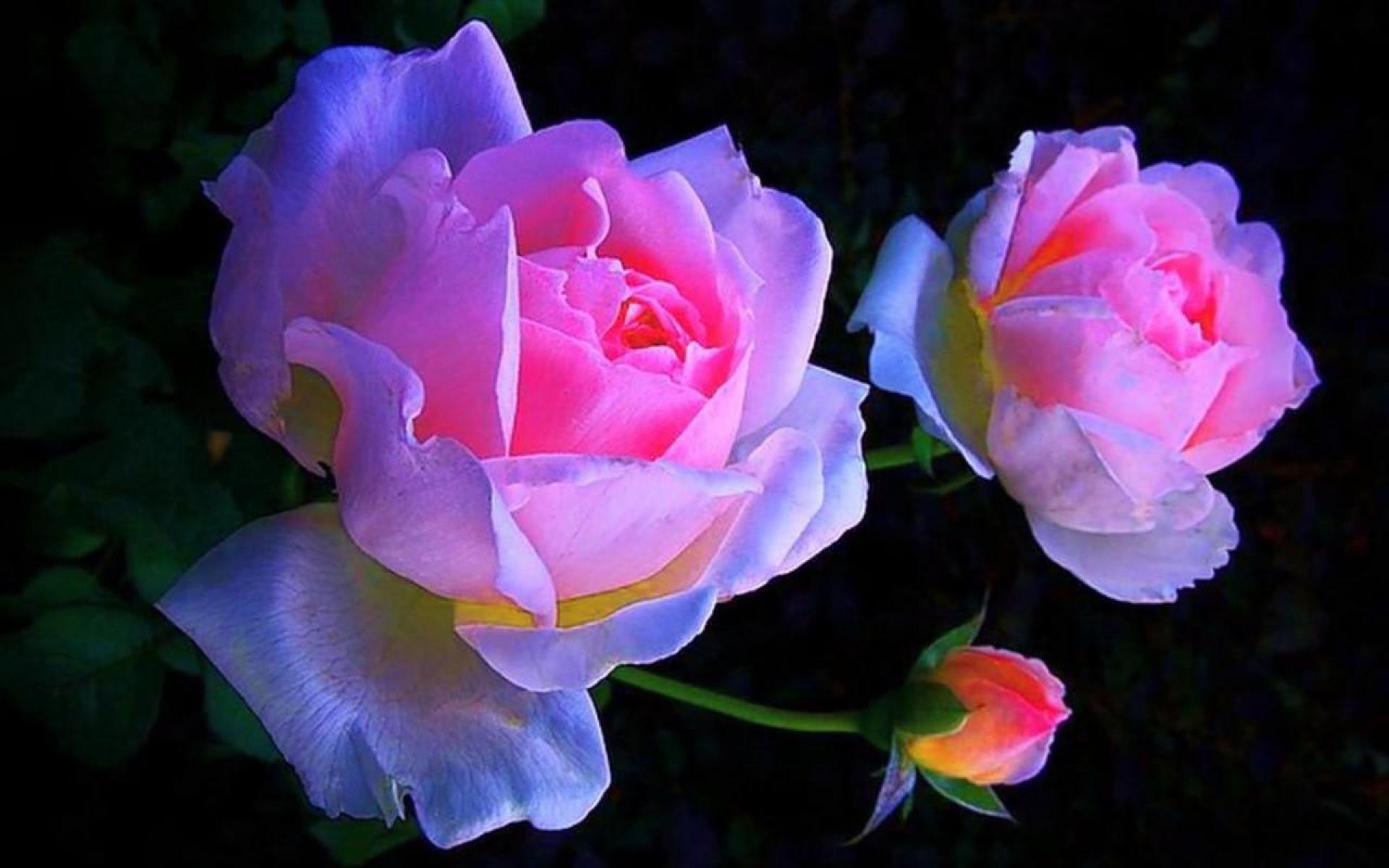 Розовые розы на темном фоне