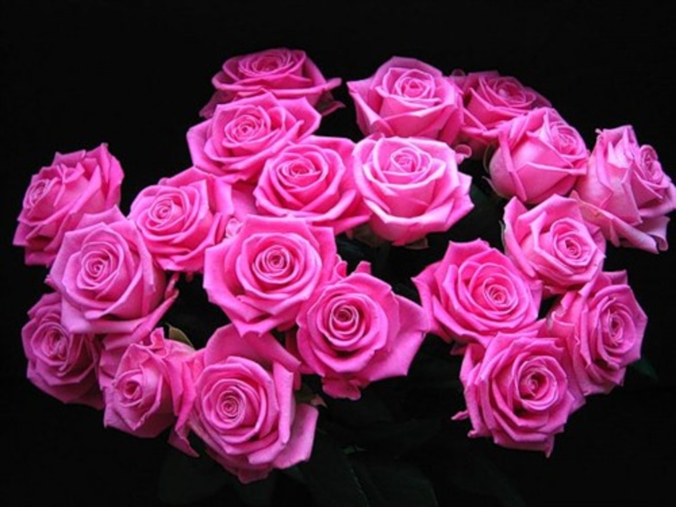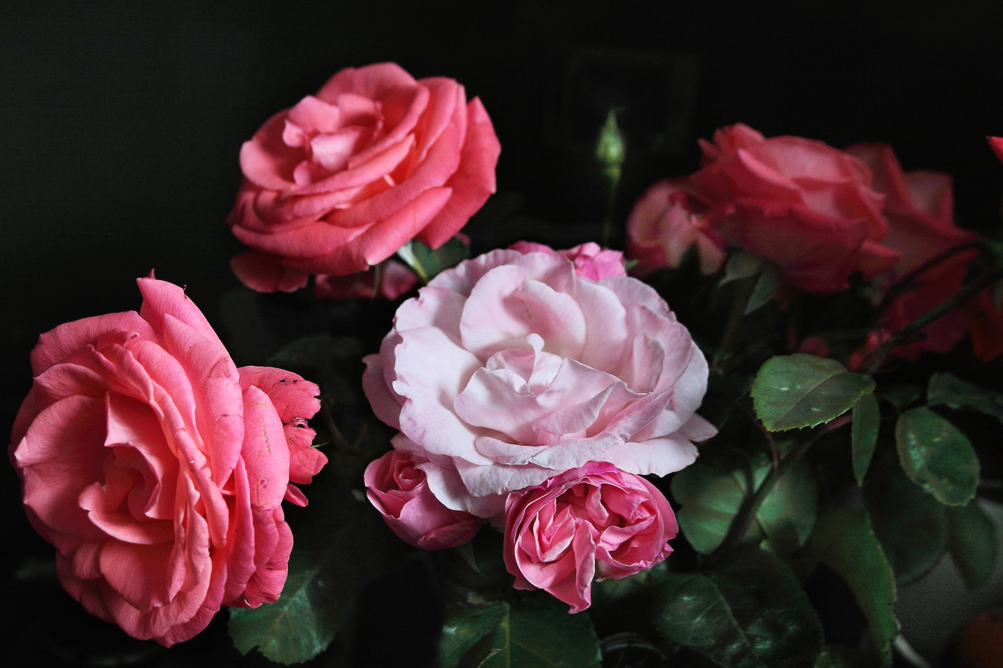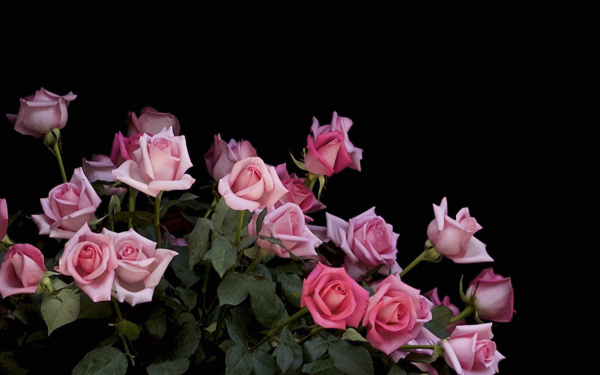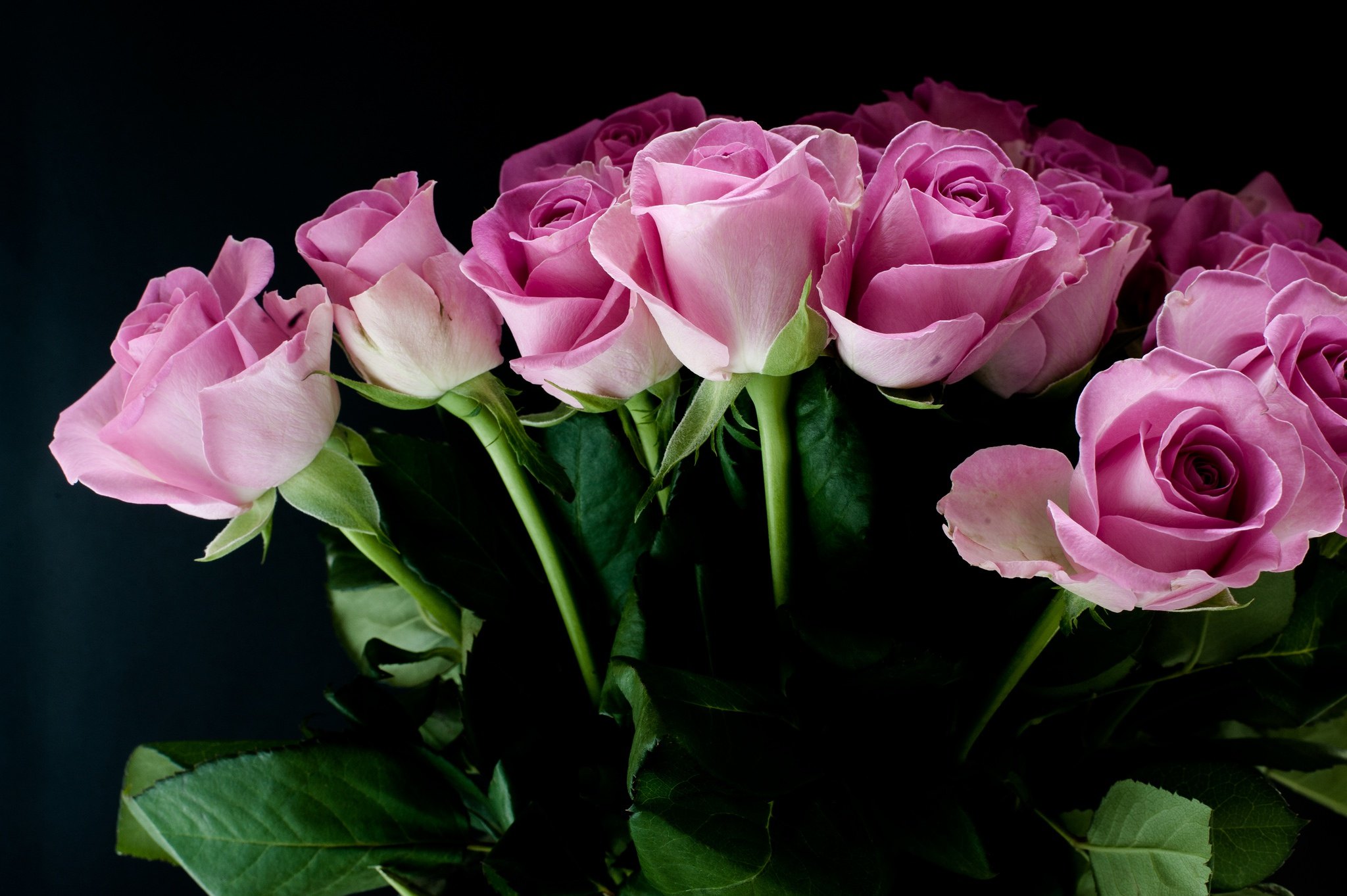 Букет розовых роз на черном фоне