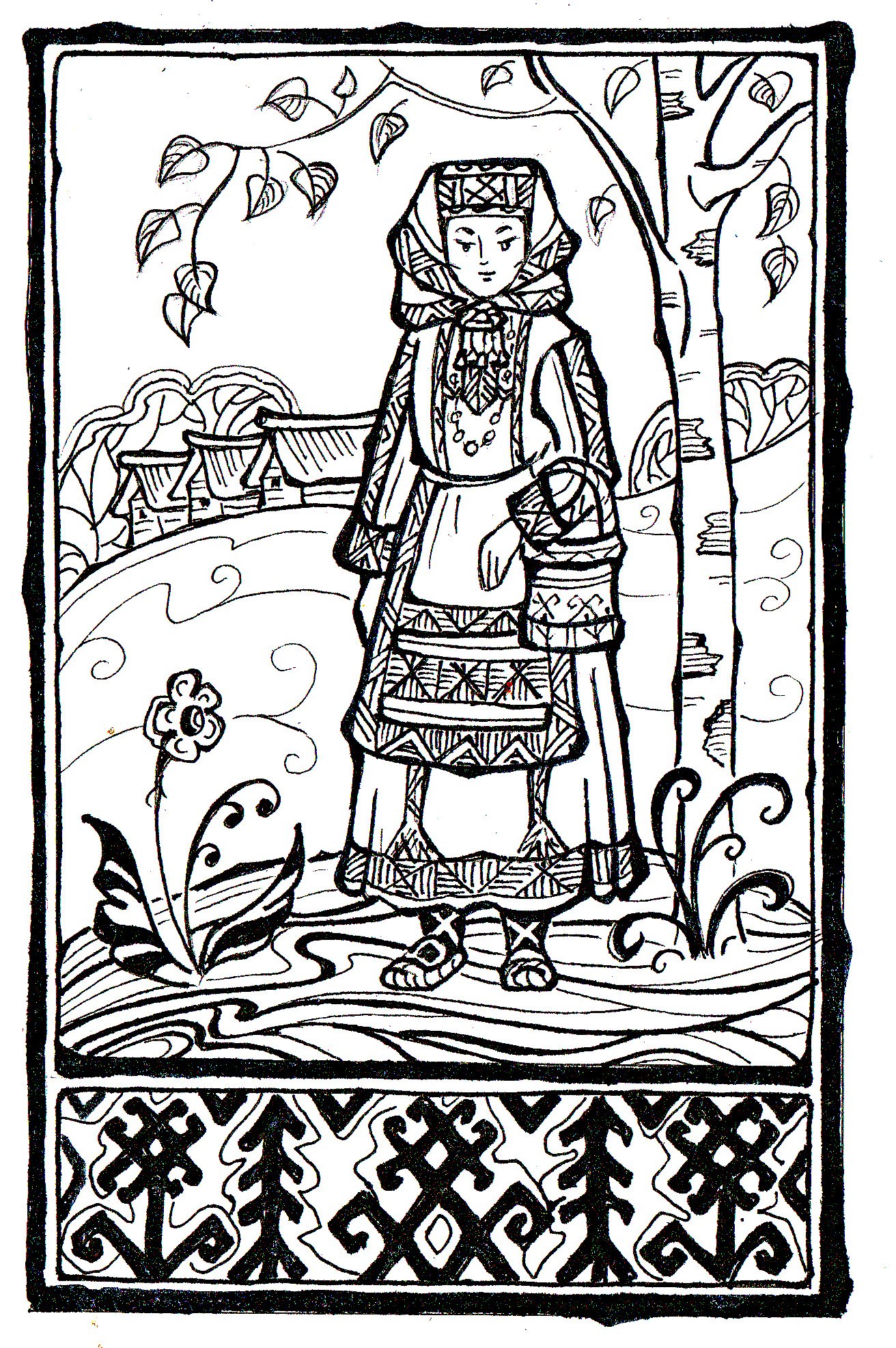 Мордовский национальный костюм раскраска
