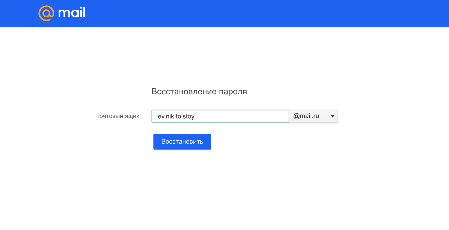 Восстановление электронной почты