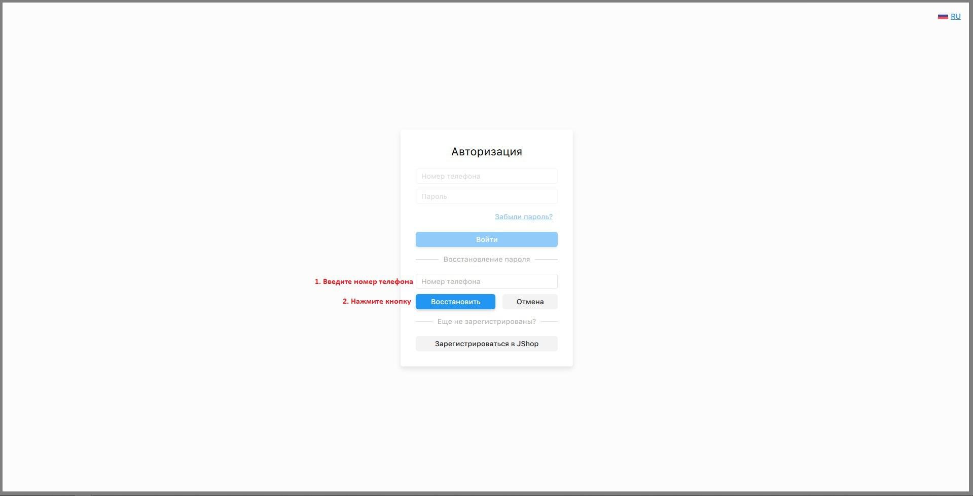 Экран восстановление пароля приложение