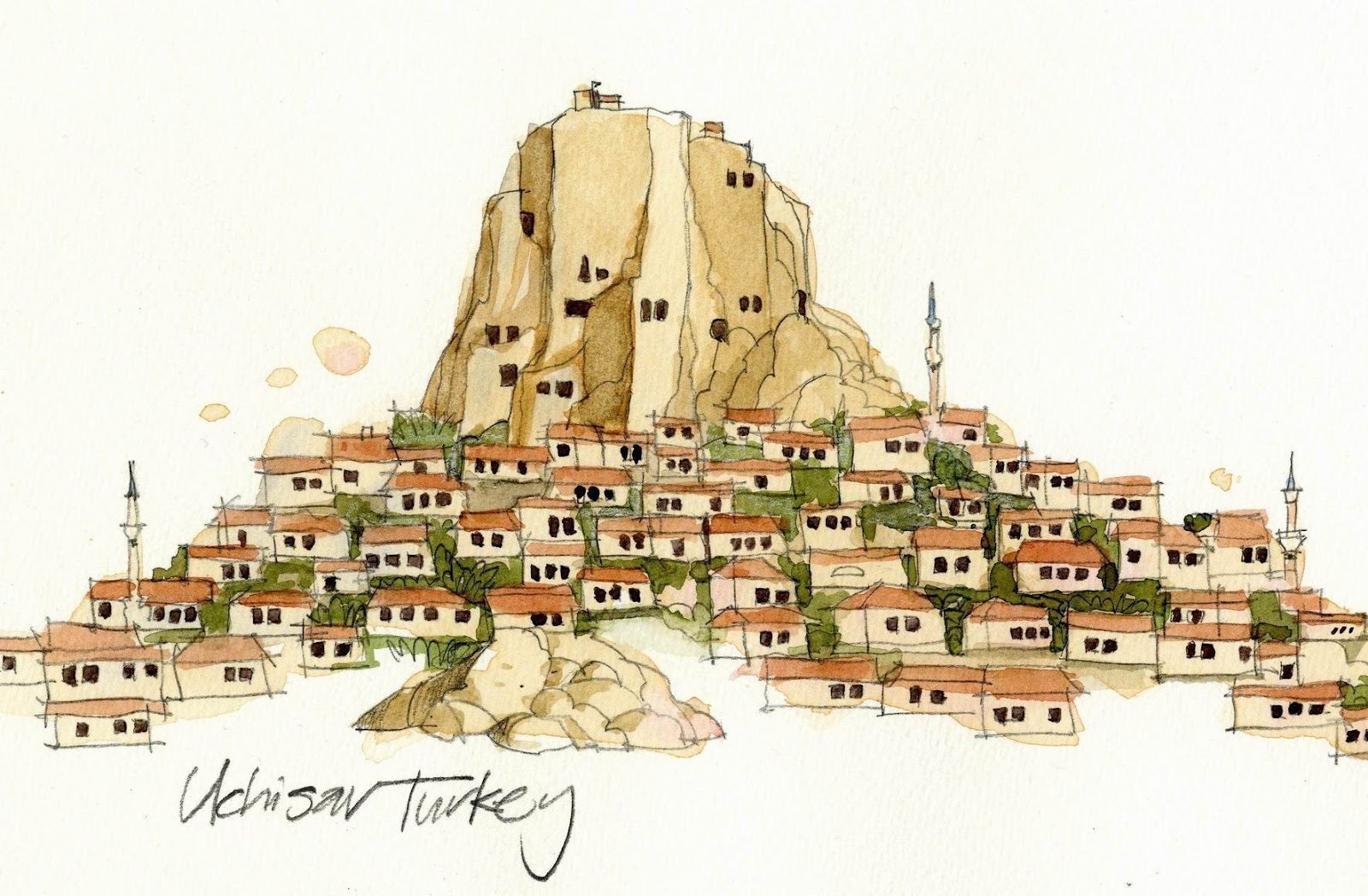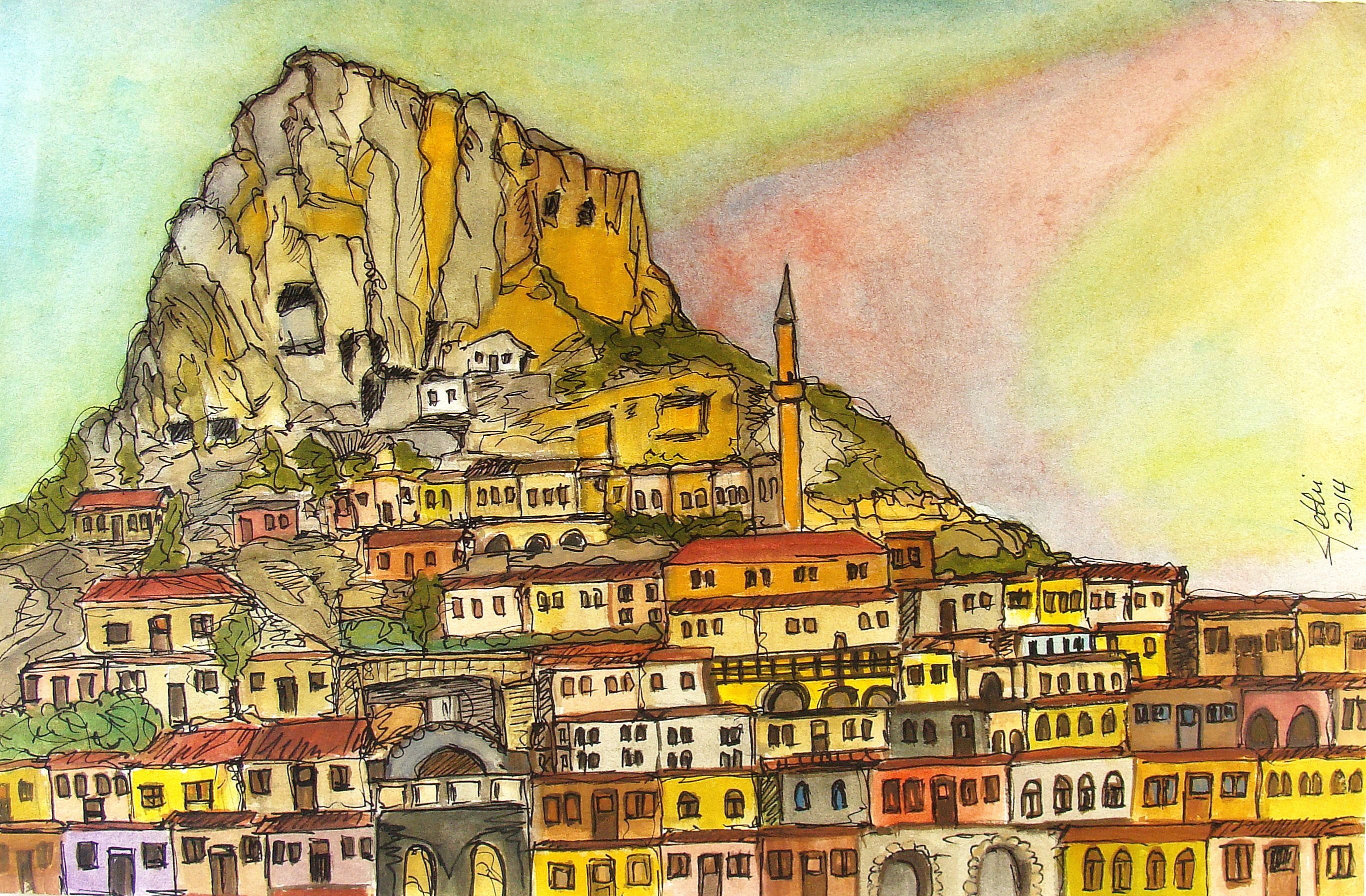Рисунок Каппадокия акварель Каппадокия