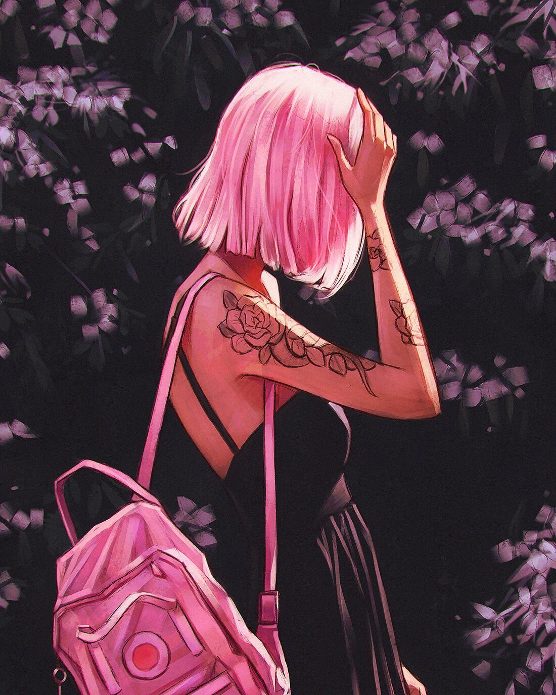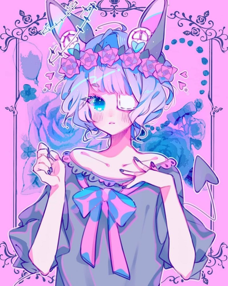 Арты девушек с розовыми волосами