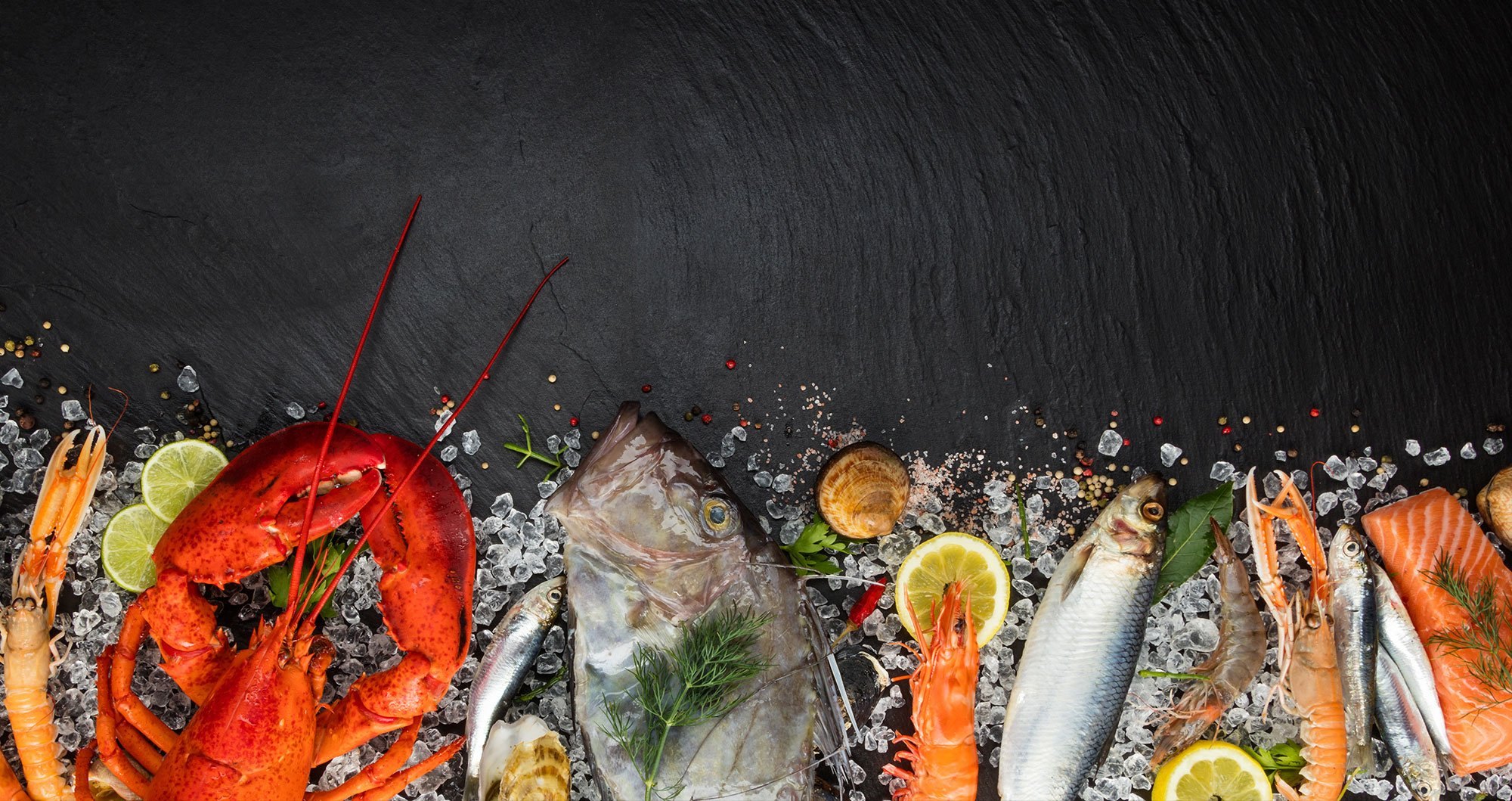 Морепродукты на черном фоне