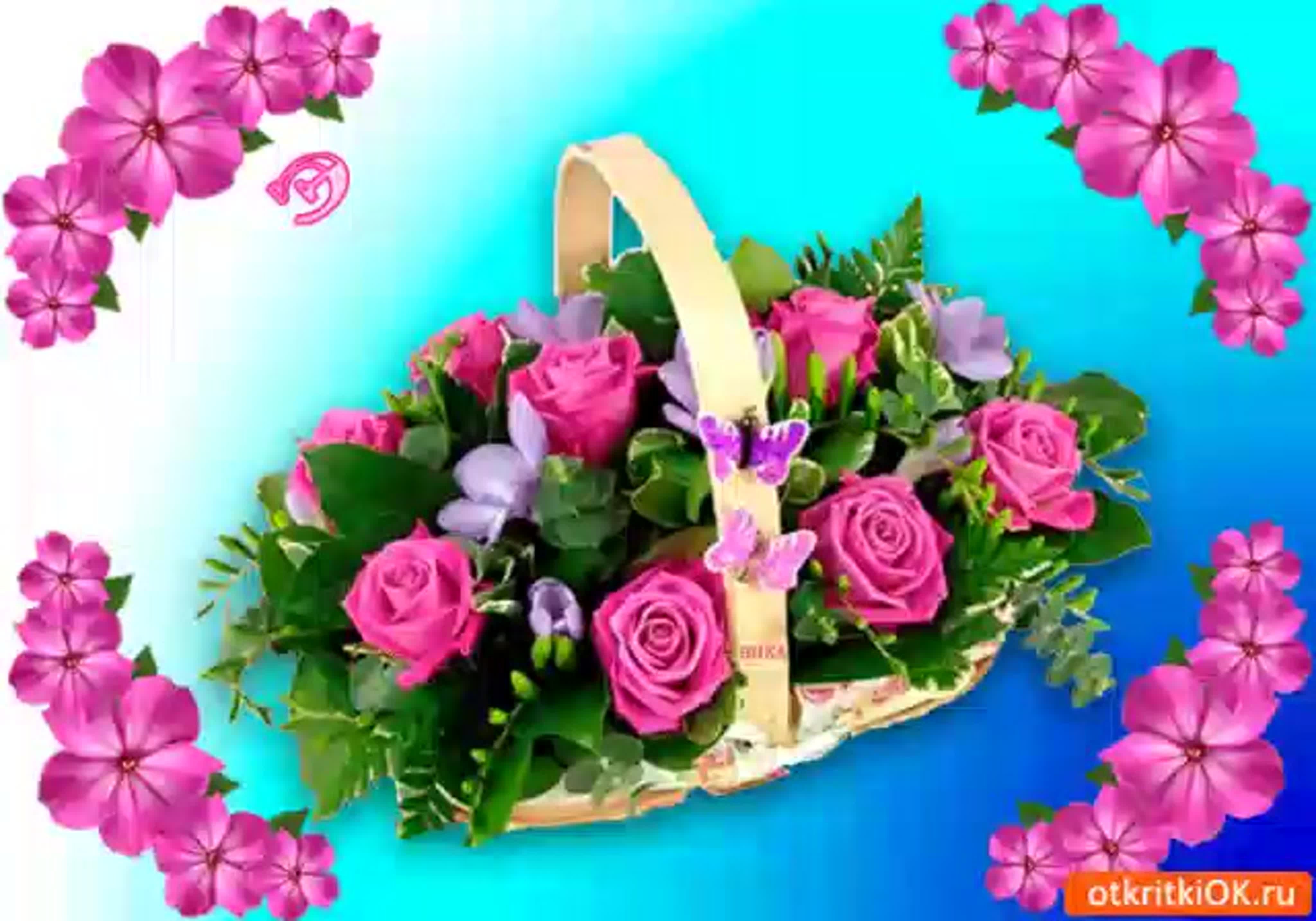 Поздравительная открытка корзина с цветами