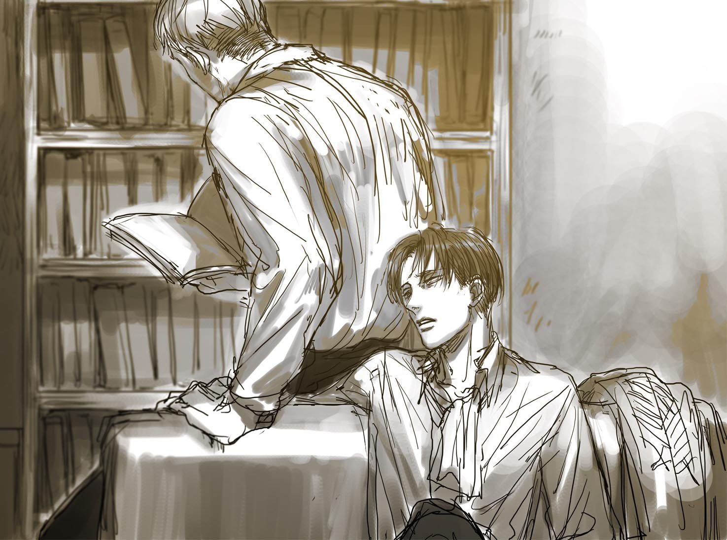 Эрвин и Леви в библиотеке