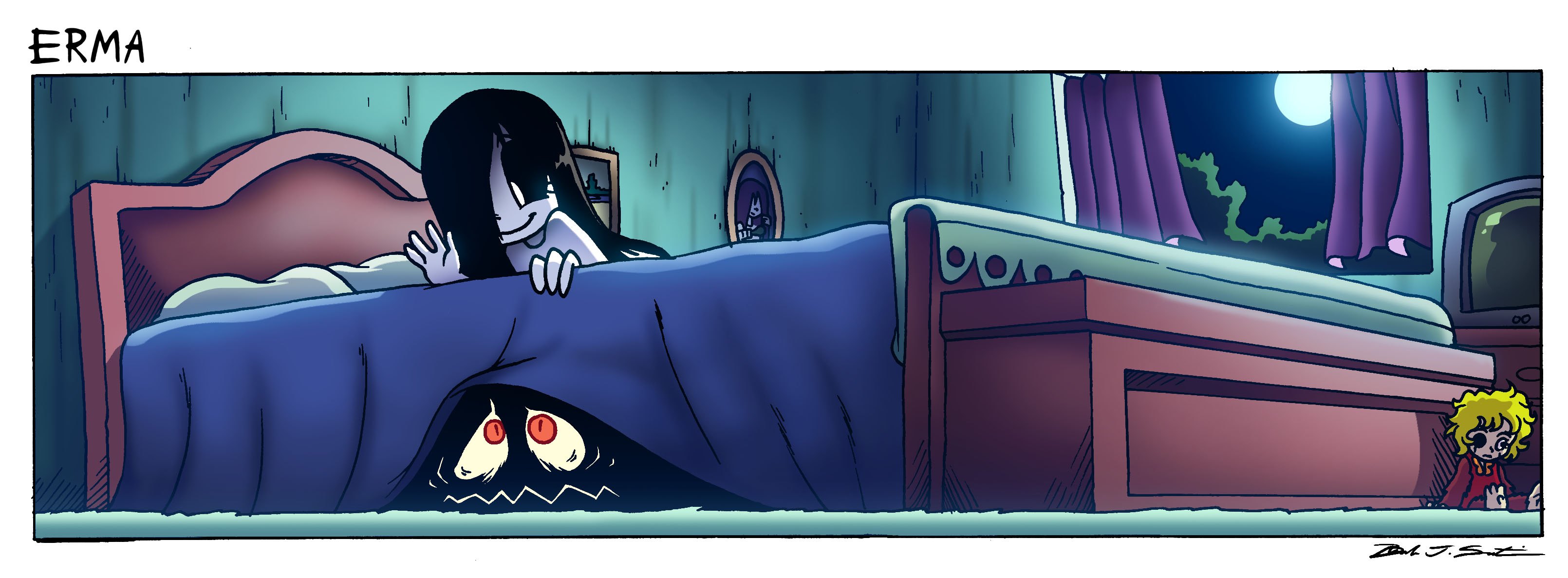 Подкроватный монстр и девушка комикс